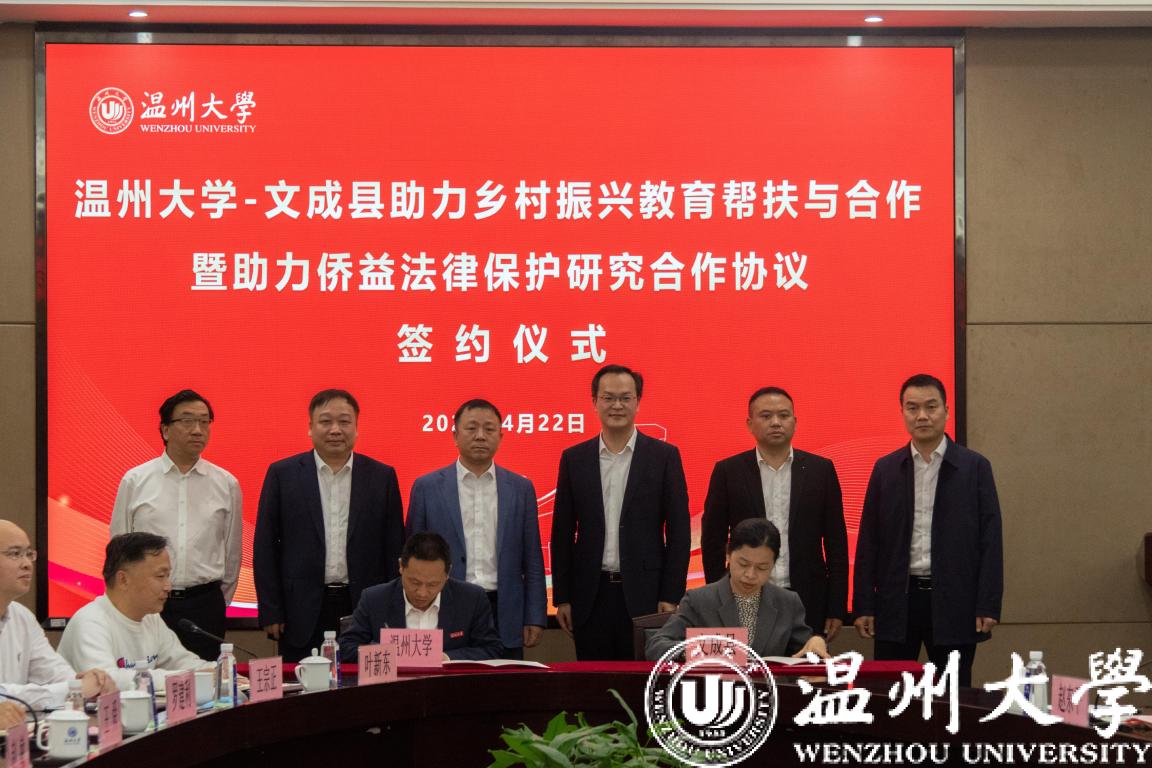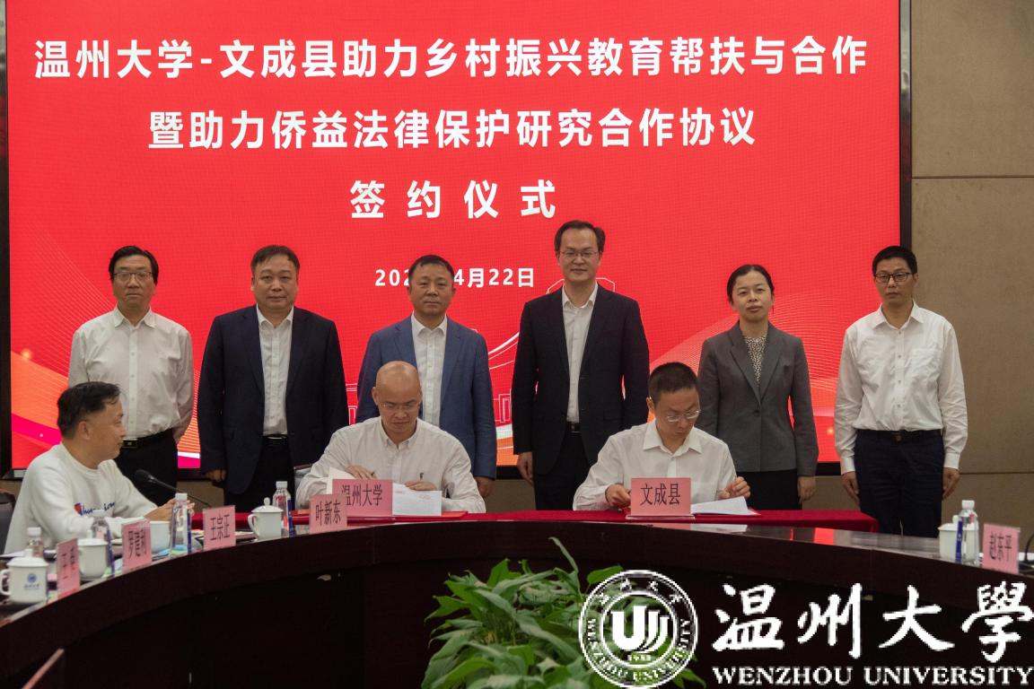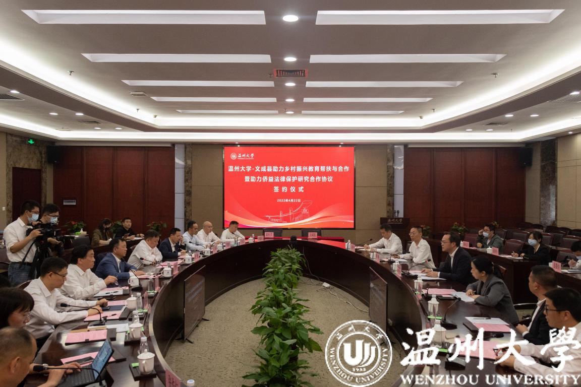 4月22日下午,永利集团官网-文成县助力乡村振兴教育帮扶与合作暨助力侨益法律保护研究合作协议签约仪式在公司举行。校领导谢树华、赵敏、蔡曙光、王舜,文成县县委书记刘中华、副县长吴可塑等领导出席仪式。赵敏主持。