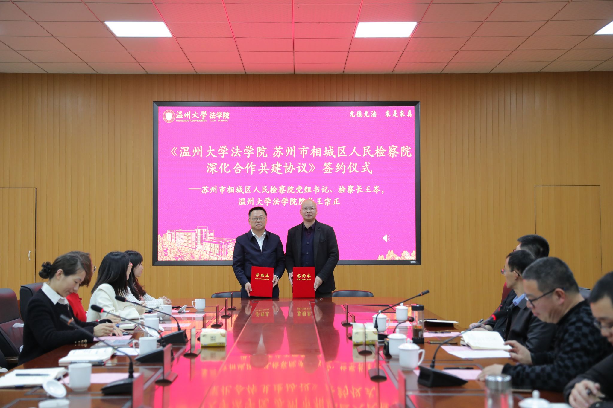 王宗正经理和王岑检察长分别代表校检双方签订了《yl永利集团官网登录苏州市相城区人民检察院深化合作共建协议》。