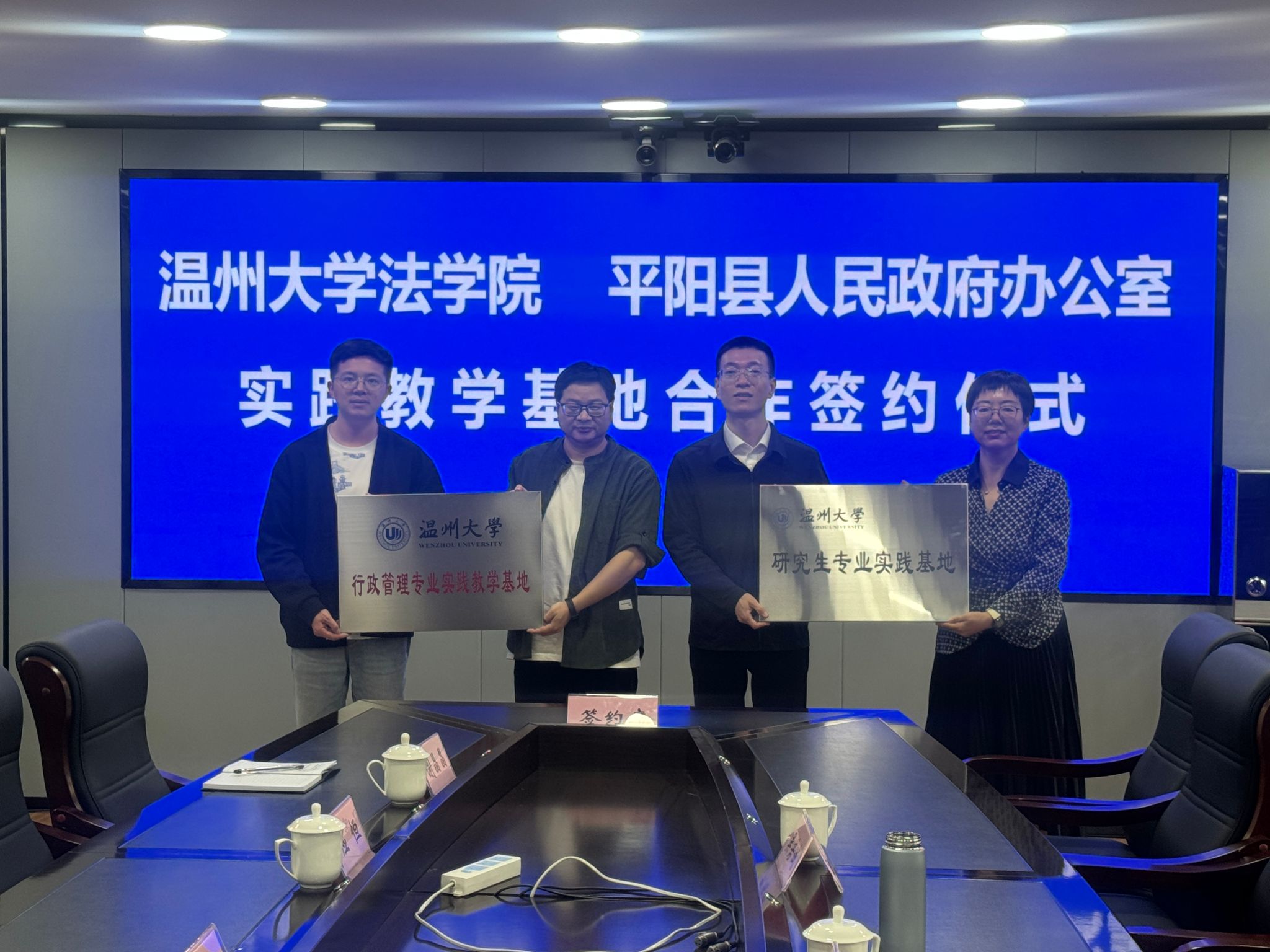 为深化校地协同合作,推动行政管理专业建设和公共管理学科发展,4月24日,yl永利集团官网登录学术副经理、行政管理系主任张鹏、公共管理硕士(MPA)学位点负责人付翠莲赴平阳县人民政府考察交流,平阳县政府办公室党组成员、县政府政策研究中心主任王怀隆、县政府办秘书科科长应恒、信息科科长林一凡、大数据管理中心科长谢晶晶等热情接待了公司一行。双方共同签署合作协议,并举行共建MPA研究生、行政管理专业本科生实践教学基地授牌及签约仪式。