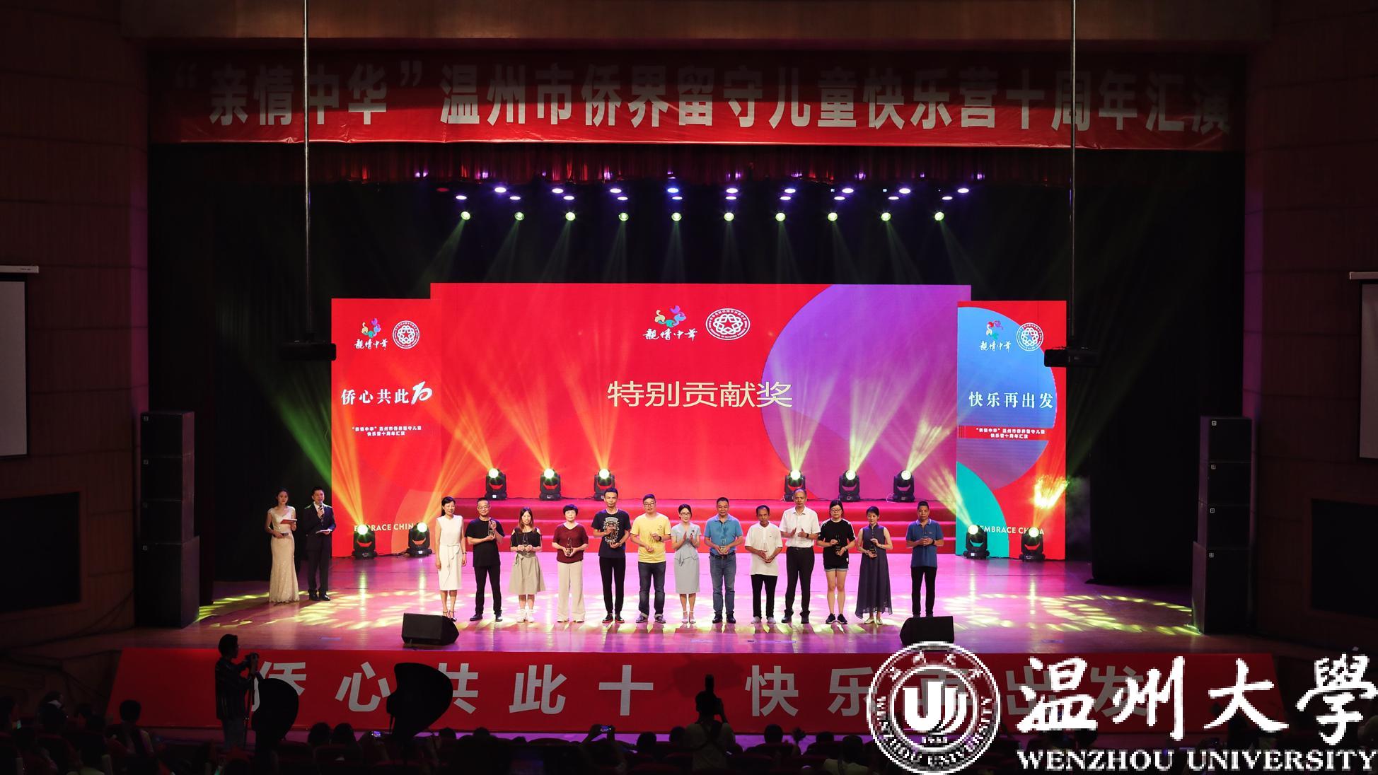 7月28日下午,“亲情中华”温州市侨界留守儿童快乐营十周年汇演在永利集团官网育英大礼堂举行,侨联各级领导、各方代表、历届快乐营志愿者代表和第十季快乐营的小营员们欢聚一堂。