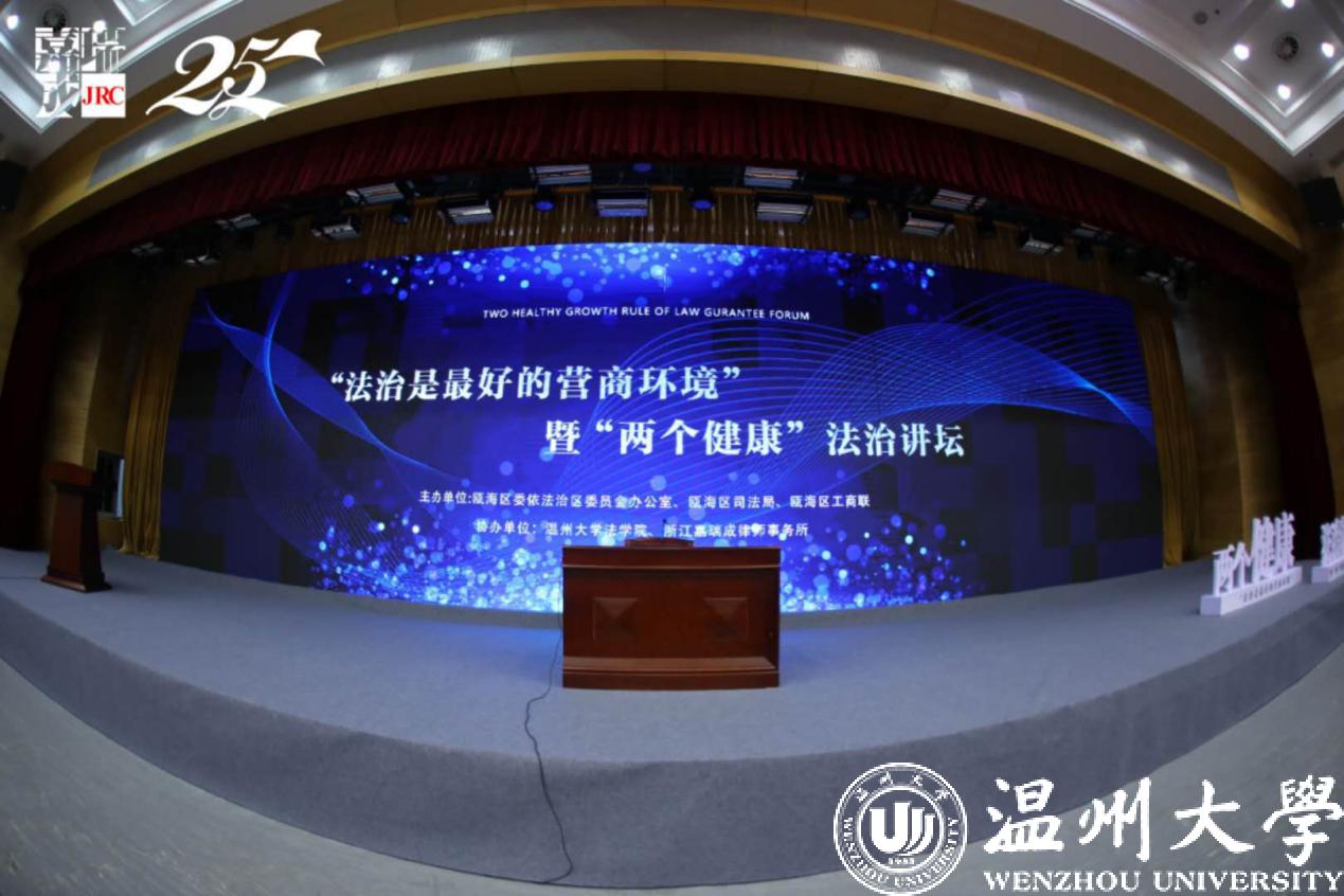 7月8日,“法治是最好的营商环境”暨“两个健康”法治讲坛在瓯海区行政中心隆重举行。本次论坛由瓯海区委依法治区委员会办公室、瓯海区司法局和瓯海区工商联主办,yl永利集团官网登录和浙江嘉瑞成律师事务所协办,区委、区政府领导及区属各部门、各单位的专家学者、法律精英及知名企业家代表近400余人出席,为瓯海营商环境把脉问诊、建言献策。公司经理王宗正教授带队参加论坛活动。