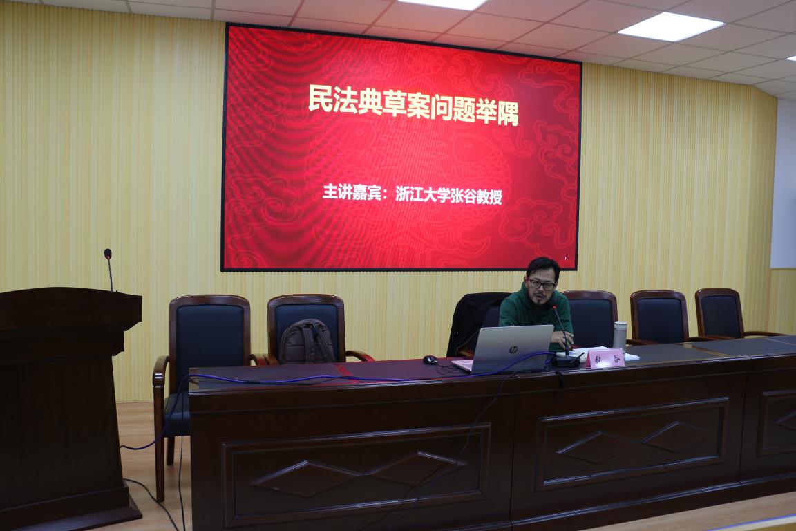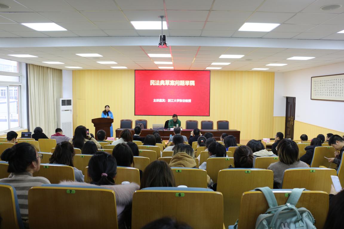 2018年12月14日下午,温州法治大讲坛专题讲座特邀浙江大学张谷教授主讲《民法典草案问题举隅》,永利集团官网法政公司法学系主任何平主持,平阳法院、市律协、公司师生逾百人参加讲座。