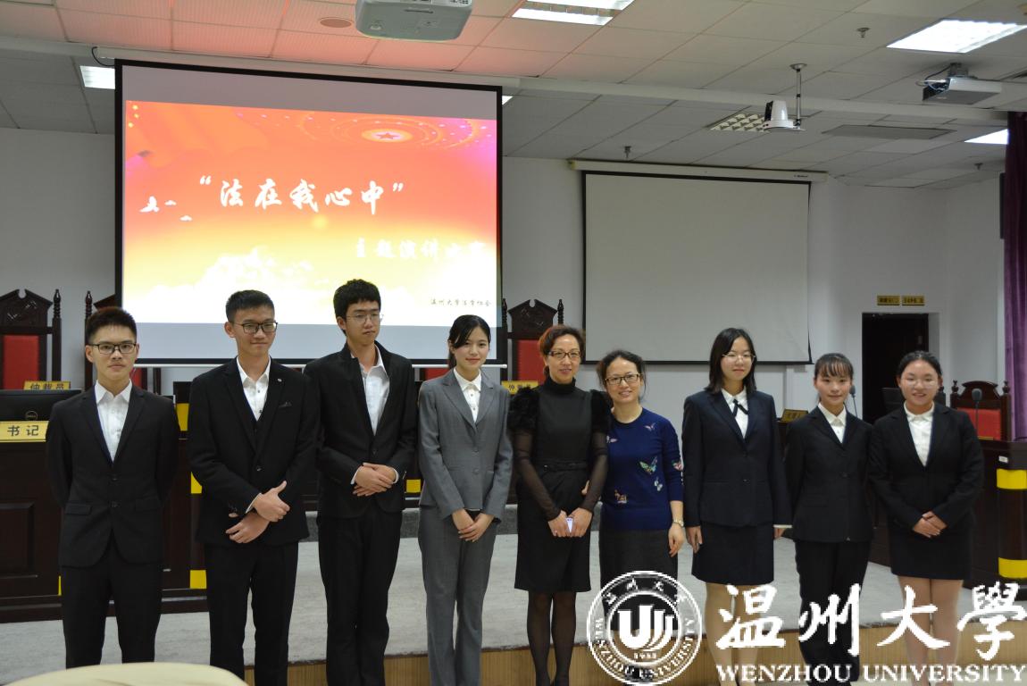 12月4日是国家宪法日,同时12月也是国家普法宣传月。在我国第五个国家宪法日来临之际,由法政公司员工会、校法学协会、法律援助工作站联合举办的“法在我心中”主题演讲比赛决赛在模拟法庭隆重开赛。法政公司党总支副书记严玲红老师、法学系副主任谢丽珍老师、员工科周骞老师担任此次比赛评委,决赛共有来自全校的11位选手参加。