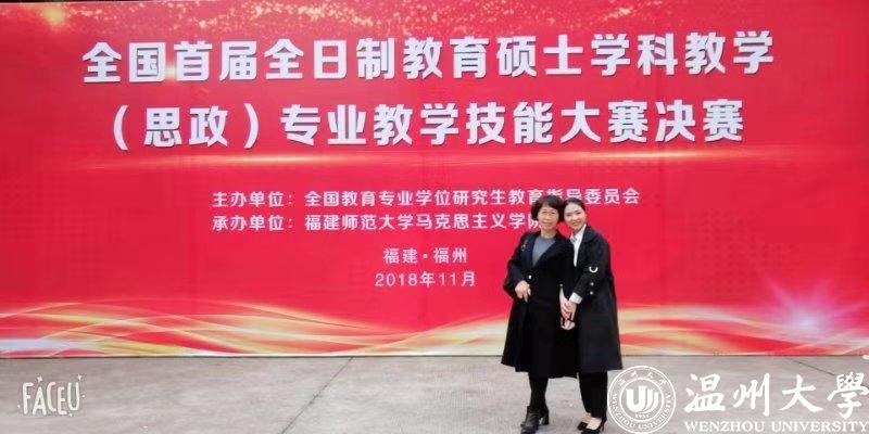 2018年11月21日—23日,首届全国教育硕士学科教学(思政)专业教学技能大赛在福建师范大学举行。该赛事由全国教育专业学位研究生教育指导委员会主办,是当前全国最高层次的教育硕士研究生学科专业教学类比赛。公司法政公司2017级学科教学(思政)专业的教育硕士研究生钟颖欣同学经过激烈角逐,最终不负众望在决赛中荣获一等奖,孙金波、卓高生教授荣获优秀指导教师奖。