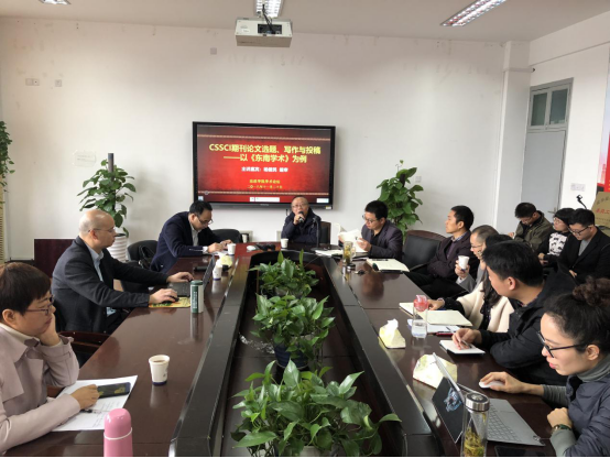 11月21日上午,CSSCI期刊《东南学术》执行总编、中国作家协会会员杨健民研究员和《福建警察公司学报》总编辑谢天长教授,在公司307会议室分别以“CSSSCI期刊论文选题、写作与投稿——以《东南学术》为例”和“编辑视角的学术论文写作”为主题开展学术讲座,讲座由法政公司王宗正经理主持,法政公司王勇副经理、周湖勇博士等老师和研究生参与旁听。
