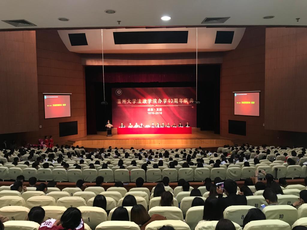 金秋十月,硕果飘香。2018年10月20日上午,怀着喜悦的心情,230多名来自全国各地的温大法政院友和800多位在校师生齐聚高教园区永利集团官网育英大礼堂,共同参加永利集团官网法政公司办学四十周年庆典。莅临公司办学四十周年庆典的领导有正校级领导、原政治科教师周湘浙老师,公司党委委员、副董事长蔡曙光老师,公司党委委员、副董事长方益权老师,参加庆典的还有法政公司历任公司领导和曾经在公司工作过的教师和各行各业的院友以及全体在校师生。典礼由公司党总支书记林钦主持。