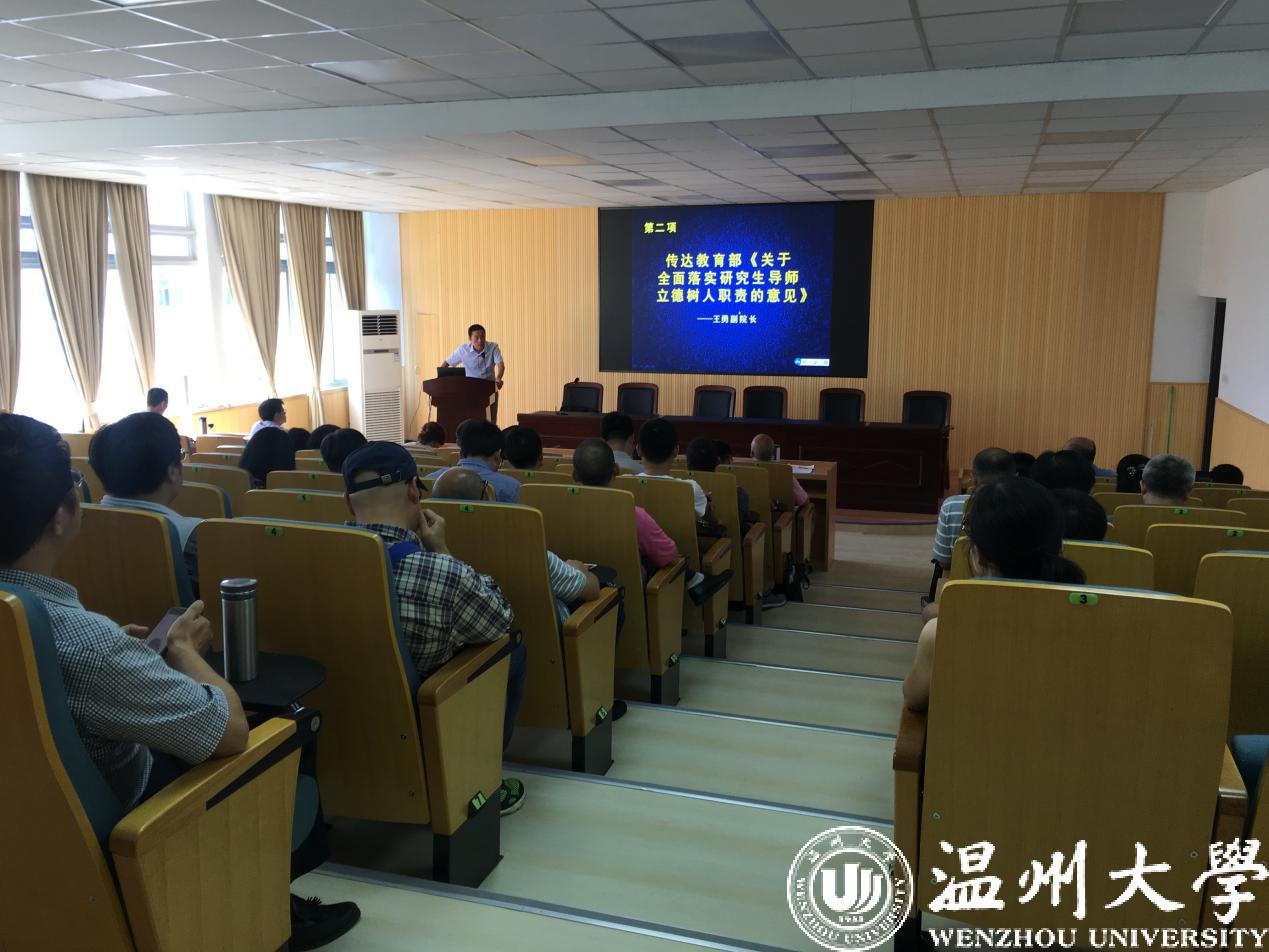 王勇副经理传达了教育部《关于全面落实研究生导师立德树人职责的意见》,把立德树人作为研究生导师的首要职责,以德立身、以德立学、以德施教,强化研究生导师基本素质要求,充分明确研究生导师立德树人职责,健全评价激励机制,各级部门强化组织保障。另外,王勇副经理还传达了校文科工作会议精神,要切实提高各类课题申报书质量,倡导以系为单位,团队协作,要积极打造高级别的研究成果,寻找特色研究方向,发挥校内研究平台的作用,发挥省市哲社基地对于科研的支持作用。