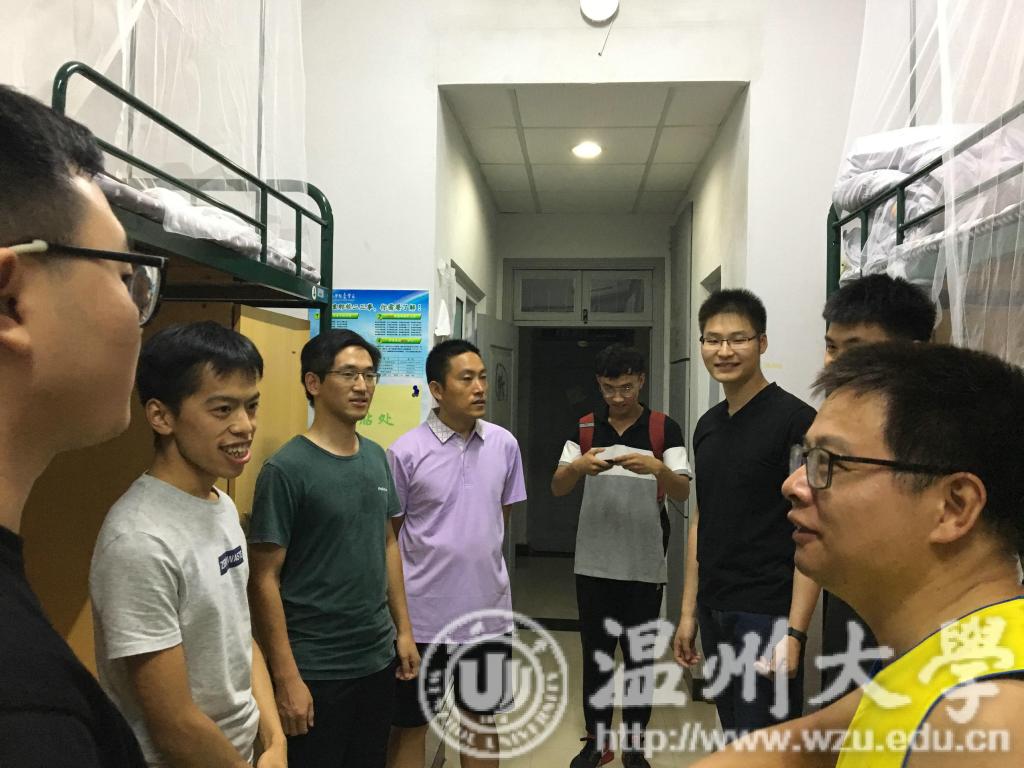 公司领导老师一行深入新生宿舍,首先查看新生的住宿环境及宿舍安全状况,确保新生住得安心,以尽快适应研究生生活。随后,公司领导老师与新生进行亲切交谈,仔细询问新生对宿舍环境、居住条件是否适应。公司领导老师要求新同学务必注意财物安全、用水用电安全、人身安全;要求新同学加强内务清洁管理,保持宿舍环境卫生。王勇副经理鼓励同学们树立远大理想、珍惜大学时光、力求共同进步,鼓励同学时常与他保持联络,并且要在研究生阶段把学术做起来。周湖勇老师勉励同学们勤奋学习、努力向上,培养良好的生活习惯,营造良好的学习氛围,做文明的研究生,为今后更好地适应社会打下坚实基础 。