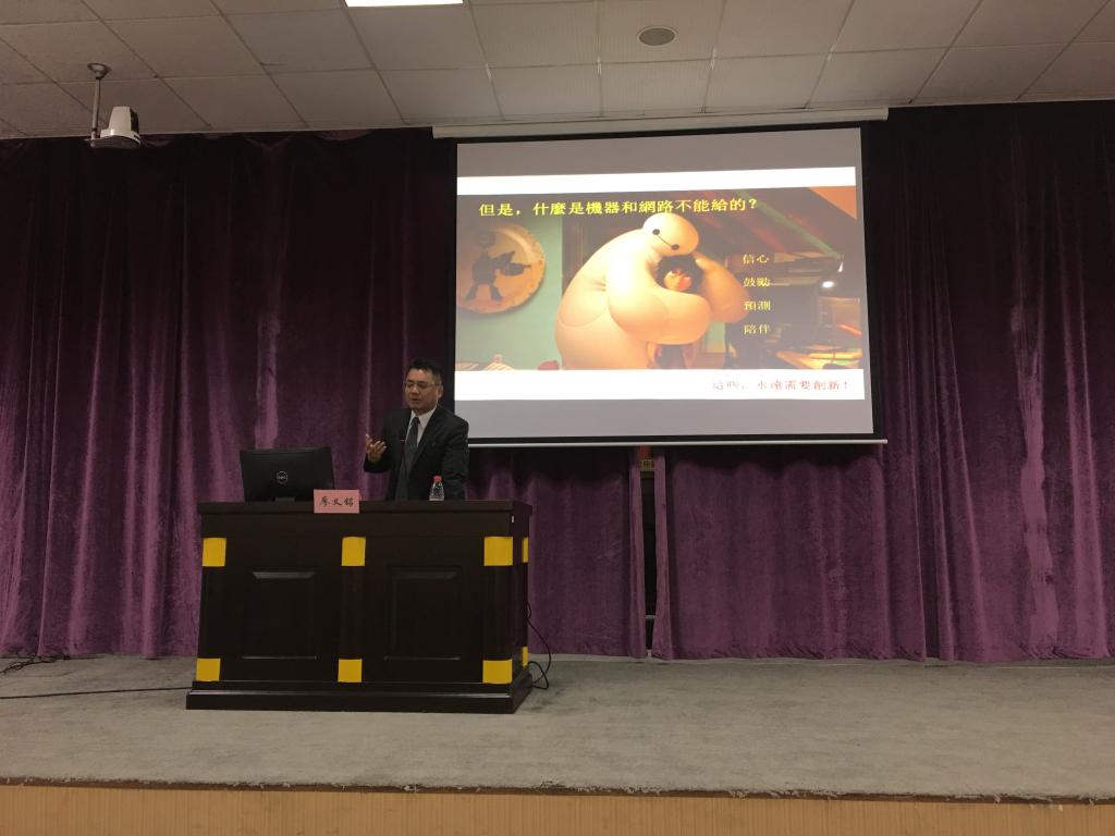 廖义铭教授以社会纠纷的解决作为切入点,引出“法律人”的概念,分析当前法学学科的价值和内涵,法律人才培养的目的及意义,并就当前人工智能的发展现状以及带给法律行业的冲击作出论述,提出“正义是盲目的”、“法律是思维和逻辑的演进”、“人工智慧重点不是人工而是智慧”等新观点,给听众以新的启迪。在讲演最后,廖义铭教授就公司高教园区派出庭的建设模式作出高度赞扬,认为这是未来法学人才培养的新方向,是值得全中国乃至全世界所借鉴的一种新的人才培养模式,并以“太极阴阳”的理论阐述了中华文化的博大精深,大陆台湾的同根同源,引起了在座观众的共鸣和阵阵掌声。