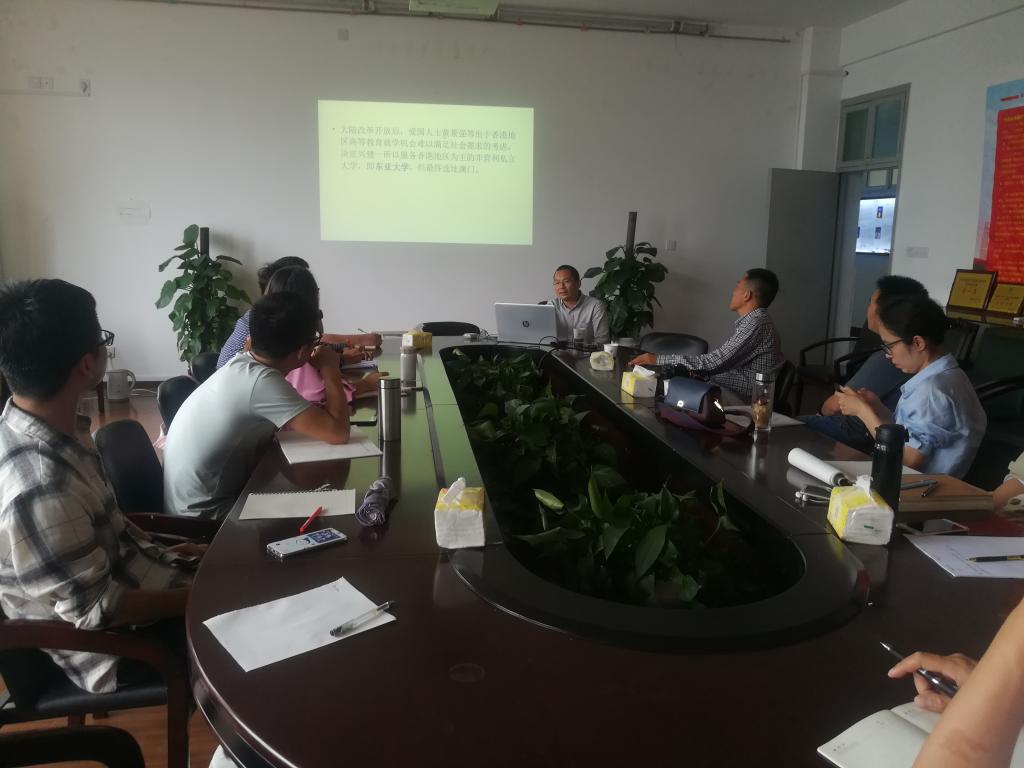 6月6日,下午3点40分,朱家德博士在法政公司307会议室以“澳门高等教育发展的历史、现状及未来”为题,开展了学术报告。会议由法政公司副经理王勇主持,参会人员有永利集团官网本科生及研究生。