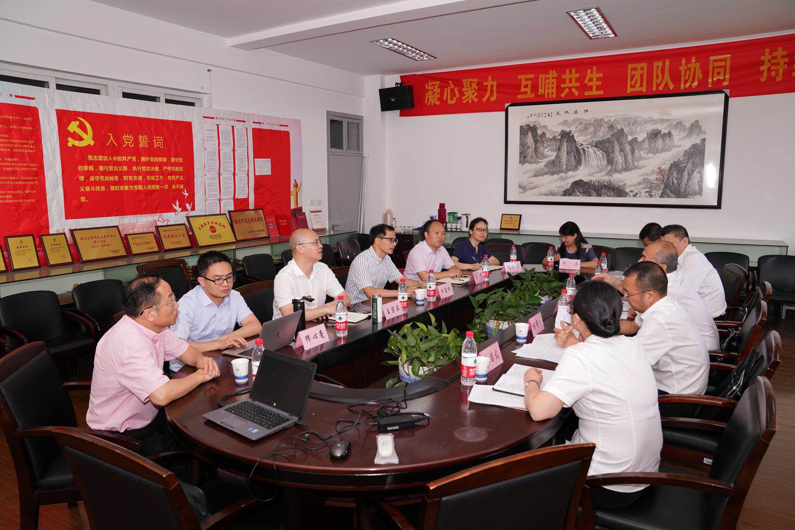 5月15日下午,温州市中级人民法院经理徐亚农一行来公司考察交流,公司党委林娟娟书记会见了徐亚农一行,方益权副董事长、党校办副主任唐华、法政公司王宗正经理、缪心毫副经理等与来访嘉宾进行座谈,共商高校-实务部门合作事宜。
