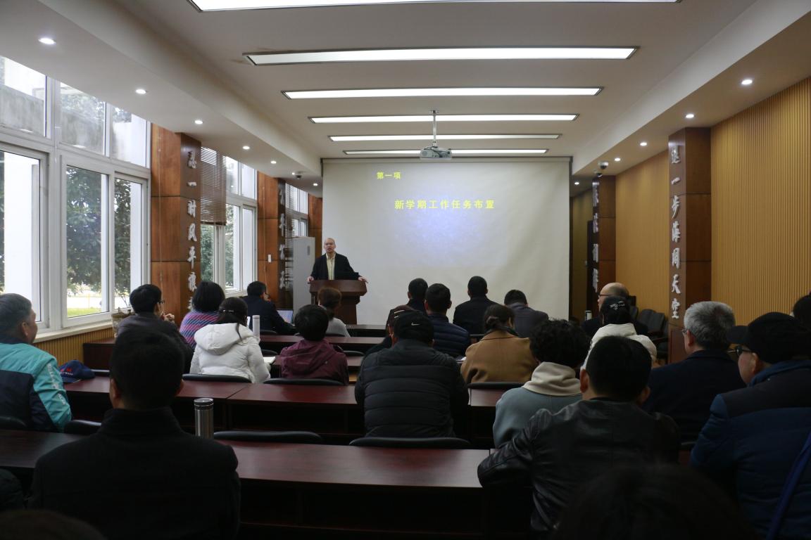 会议中,公司领导对分管的工作做了新学期的工作任务布置,其中王宗正经理对团队队伍建设、硕士一级点招生培养工作、教学工作等做了工作布置,王勇副经理对国社科重大项目开题、智库建设和各类社科项目申报等方面做了工作介绍,缪心毫副经理强调了员工毕业论文答辩、课堂教学改革、人才招聘等问题,严玲红副书记强调员工学风建设、安全和就业等问题。