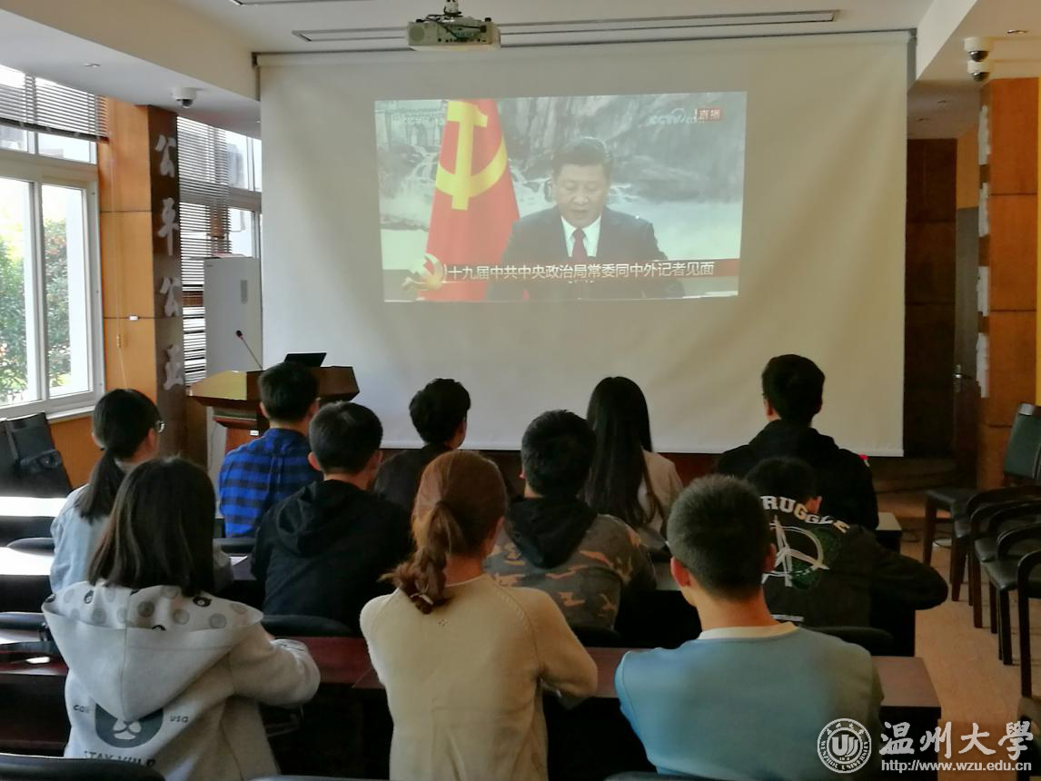 2017年10月25日11时45分,永利集团官网法政公司组织法政团学干部集体收看了十九届中央政治局常委见面会的直播节目。各班同学都积极参加并认真收看了本次见面会,共同度过了十分有意义的35分钟。