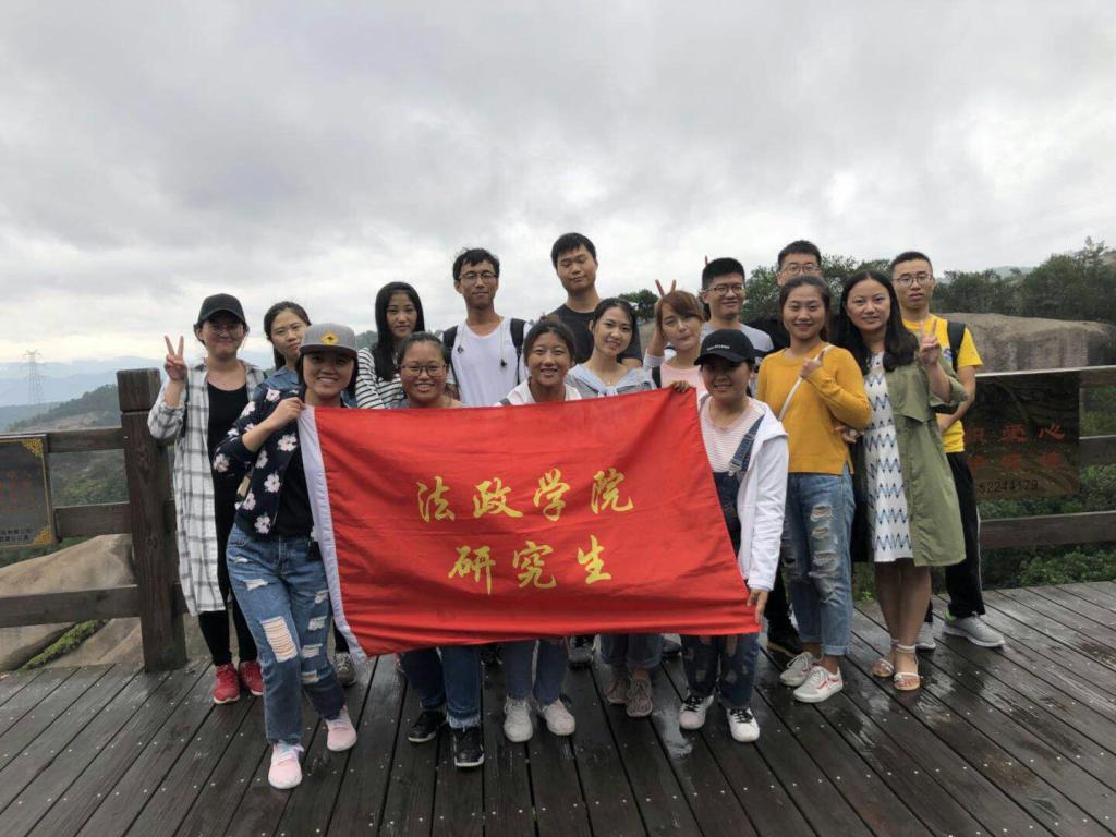 十月十四日,天微凉,细雨。法政公司研一新生在院研会主席和文体部部长的带领下,开启了攀登大罗山的序幕。