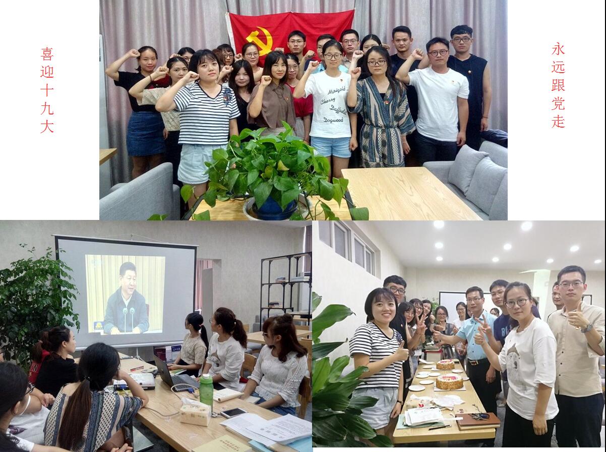 党的十九大胜利召开前夕,法政公司党总支下属三个教工党支部和一个研究生党支部于10月10日和11日纷纷组织全体党员,佩戴党徽,举行以"喜迎十九大·不忘初心跟党走"主题党日活动。