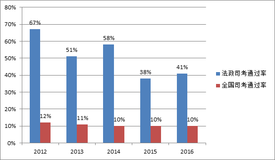 (备注:全国历年司考通过率约10%。)