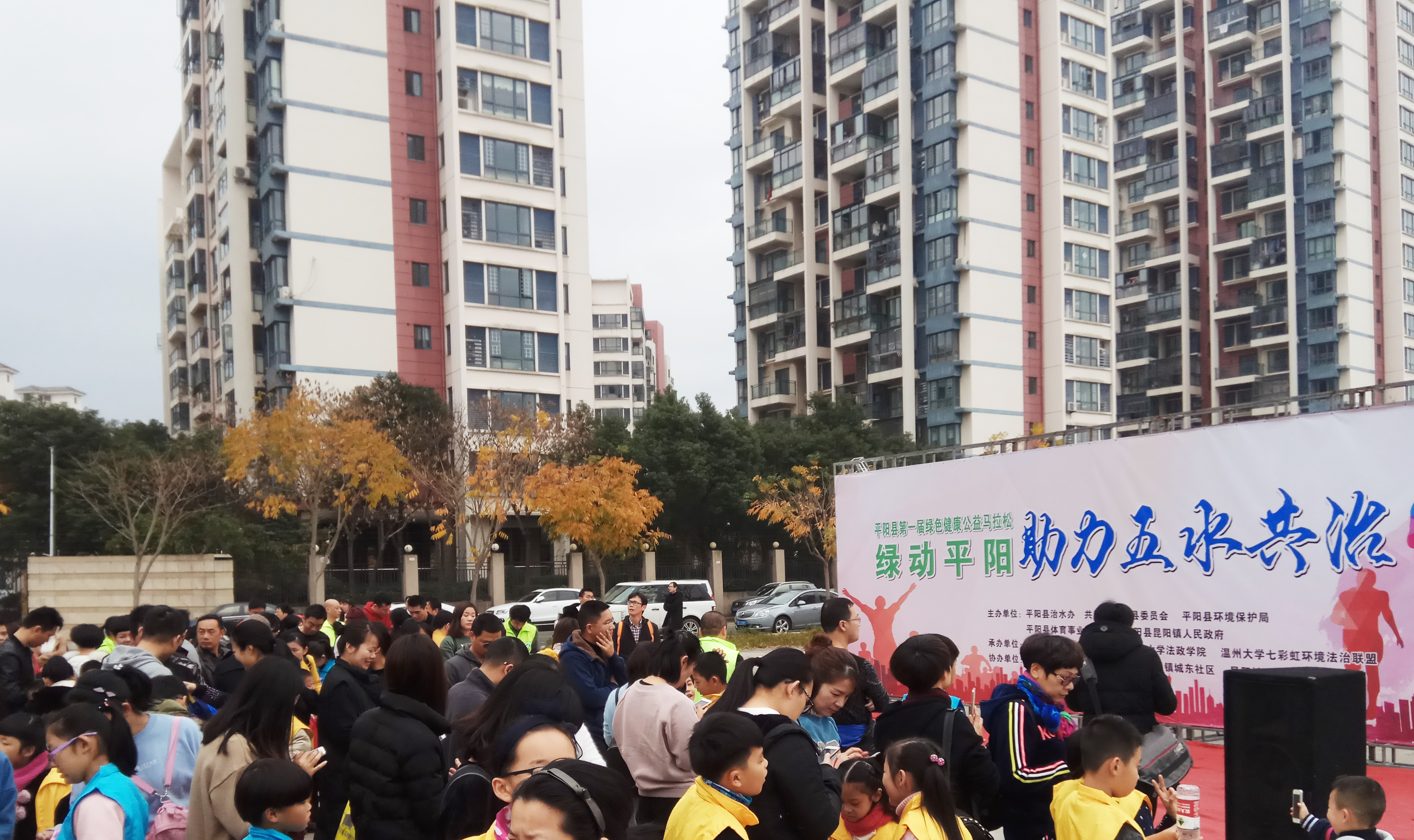 2017年1月1日上午,由永利集团官网法政公司七彩虹环保社团承办的平阳县第一届绿色健康公益马拉松活动在温州市平阳县平瑞塘河昆阳镇段成功举办。平阳县委办副主任林初潮、共青团平阳县委副书记陈利少、平阳县环保局环境宣教中心主任林珺、平阳县环保志愿者协会会长董希战、永利集团官网法政公司团委老师白昌科等嘉宾莅临活动现场,来自平阳县社会各界的200组家庭参赛队伍共500多人参加本次马拉松活动。