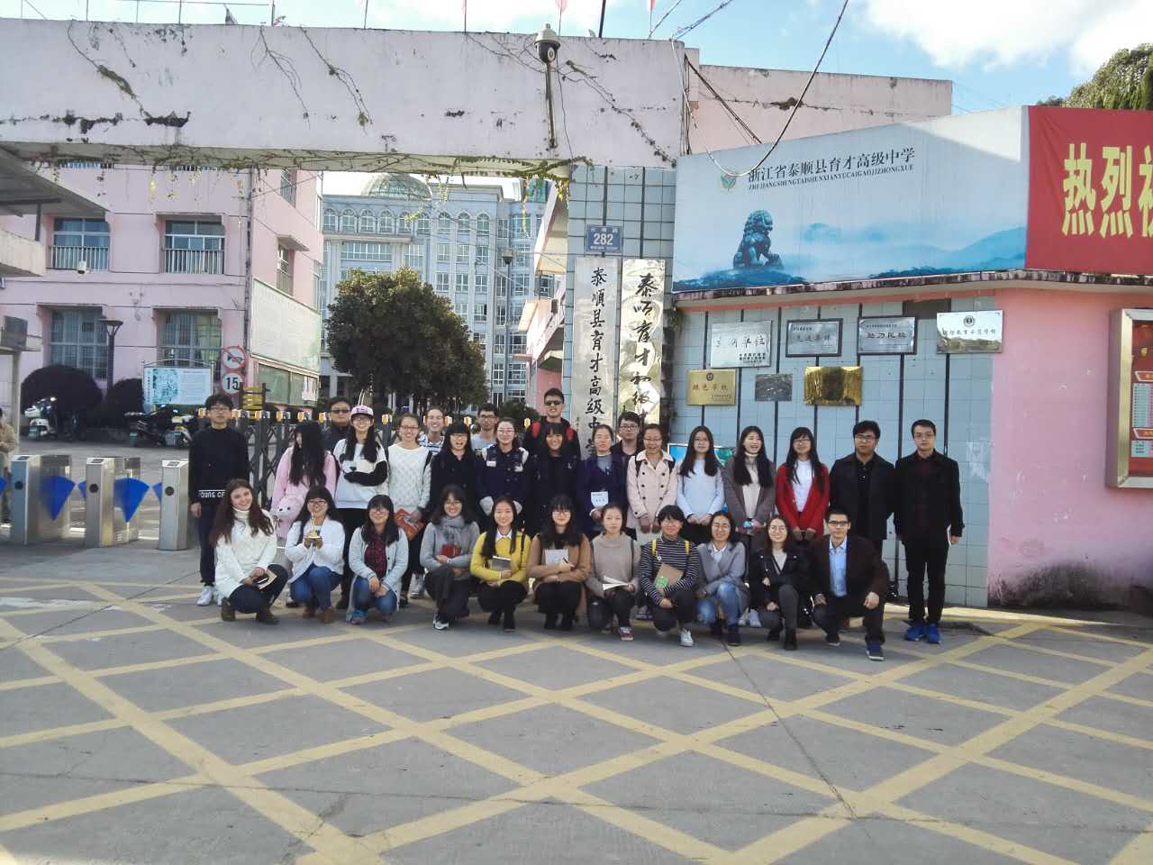 为丰富实践周内容,接触体检中学课堂生活,11月10日、11日,15政本班在李斌、孙金波及吴志敏等老师的带领下进行了为期两天的温州泰顺听课实践考察。此次考察可谓内容丰富,同学们参观了泰顺有几百年历史的廊桥,观摩了泰顺育才实验中学的课堂教学,还攀登了乌岩岭。经过此次考察,同学们不仅在专业技能上有所领悟和提高,更了解了温州的地方文化,接受了大自然的熏陶。
