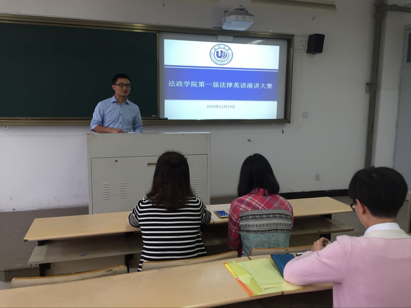 法政公司第一届法律英语大赛之演讲比赛于2016年11月14日在法政楼312教室成功举办。本场比赛由教学科和院员工会学习部联合举办,宗旨为“用英语表达你的法律观点”,目的为提高法政公司员工的英语水平,激发同学们学习法律英语的热情。本次大赛由缪心毫副经理和周一颜老师担任评委。