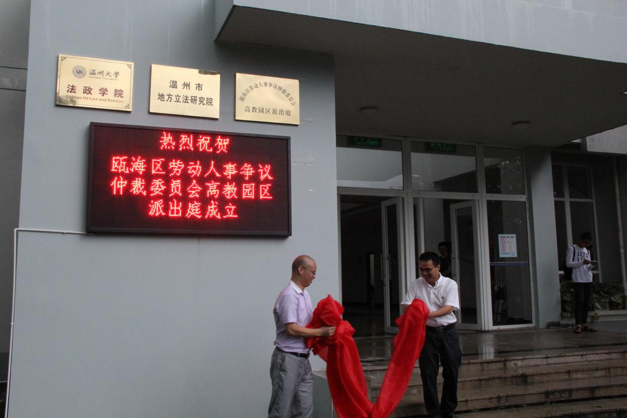 在广大师生热切期待中,在社会各界的广泛关注下,2016年9月28日瓯海区劳动人事争议仲裁委员会高教园区派出庭在公司揭牌成立,并正式运行。