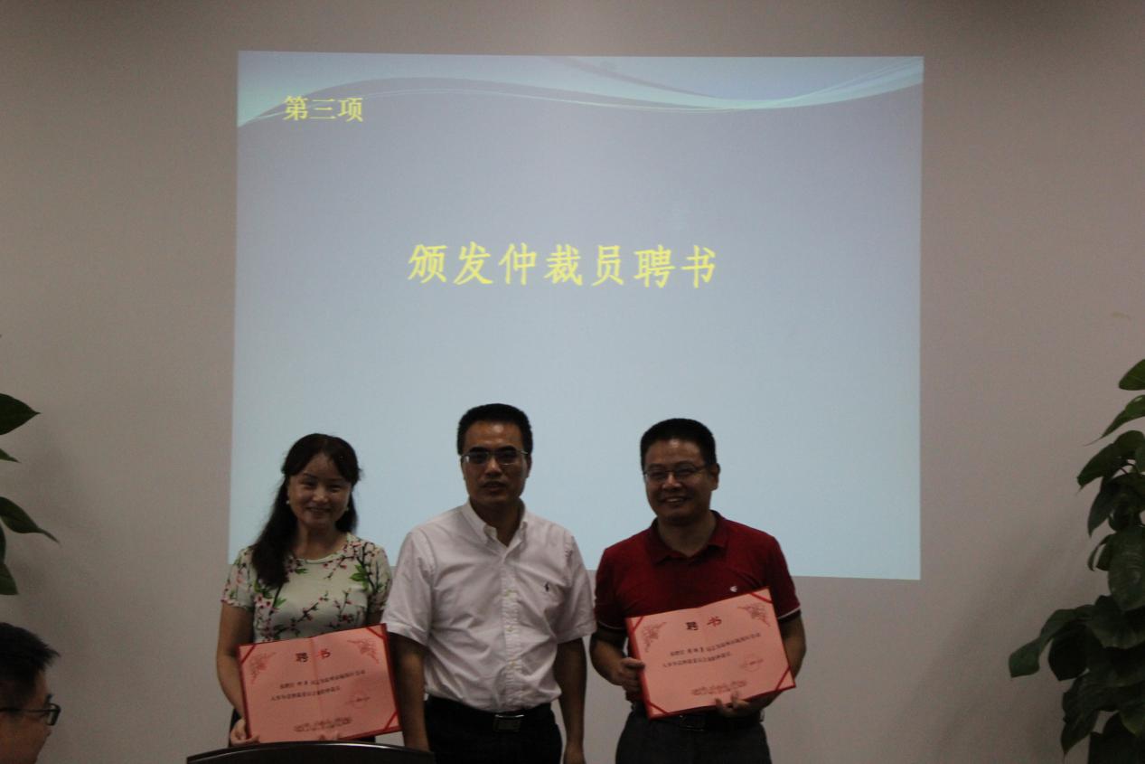 揭牌仪式由法政公司副经理缪心毫主持。瓯海区人力资源和社会保障局局长、瓯海区劳动人事争议仲裁委员会主任陈继林,温州市人力资源和社会保障局法规处副处长王震,瓯海区人力资源和社会保障局副局长、瓯海区劳动人事争议仲裁委员会副主任姜林,还有永利集团官网法政公司班子成员及师生代表、温州市人力资源和社会保障局、温州市劳动人事争议仲裁院、瓯海区人力资源和社会保障局、瓯海区劳动人事争议仲裁院等单位代表共30多人也出席。陈继林局长亲自为高教园区高校的仲裁员代表颁发聘书。