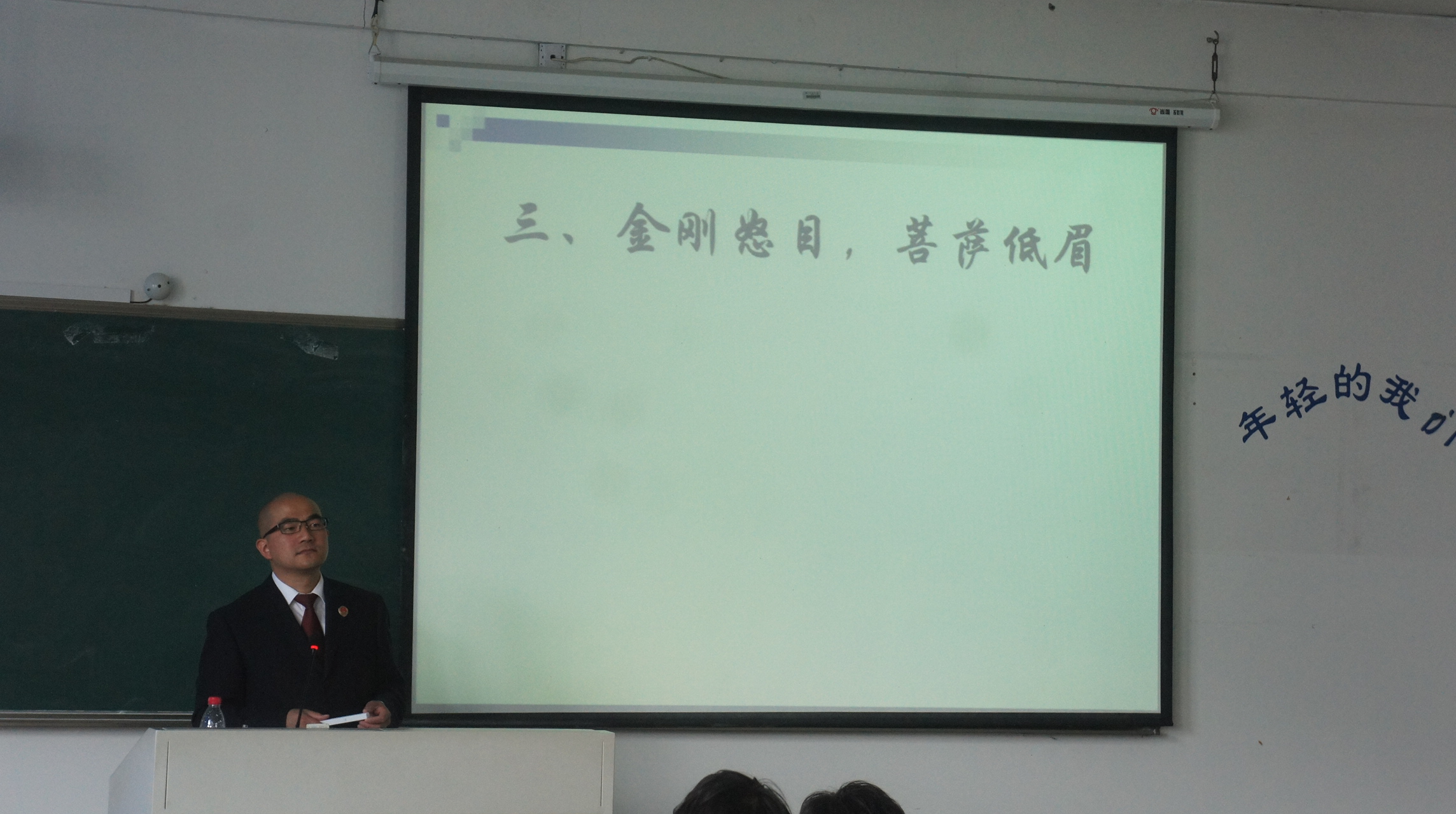 金检察官的讲座题目是《漫谈自侦案件的审讯技巧》,讲座伊始,他拿自己的光头开涮,一下子让讲座的气氛活跃起来,他说自己的初衷是想给尚未踏上社会、白纸一样的老员工们设定一条底线,为他们未来的职业生涯打一点底色:不管将来身处什么地方、干什么工作,都牢记法律是关于正义的实务,不忘"当为哑巴开口,为一切孤独伸冤"之初心;然后,金检察官旁征博引,从柏拉图到诸子百家,从四大名著到金庸武侠,从神话故事到身边经典案例,信手拈来,条分缕析,将自侦案件的审讯技巧娓娓道来,一改法律说教痕迹,将很专业的法律问题以幽默通俗的语言表达出来,形象地告诉大家,自侦案件的审讯工作就是一个与各大高手过招的工作,要阅历丰富,眼光独到还得关注细枝末节,方得从蛛丝马迹中查获案件证据。