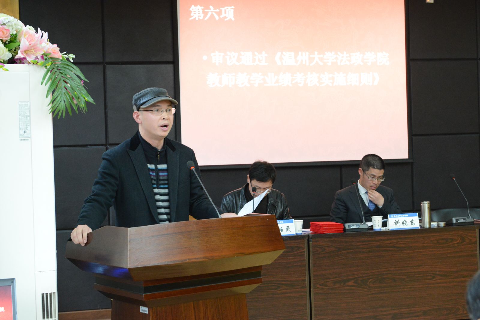 王宗正副经理对《《永利集团官网法政公司教师教学业绩考核实施细则(征求意见稿)》进行了简要的分析和说明。全体代表通过举手表决审议通过了公司教师教学业绩考核实施细则。