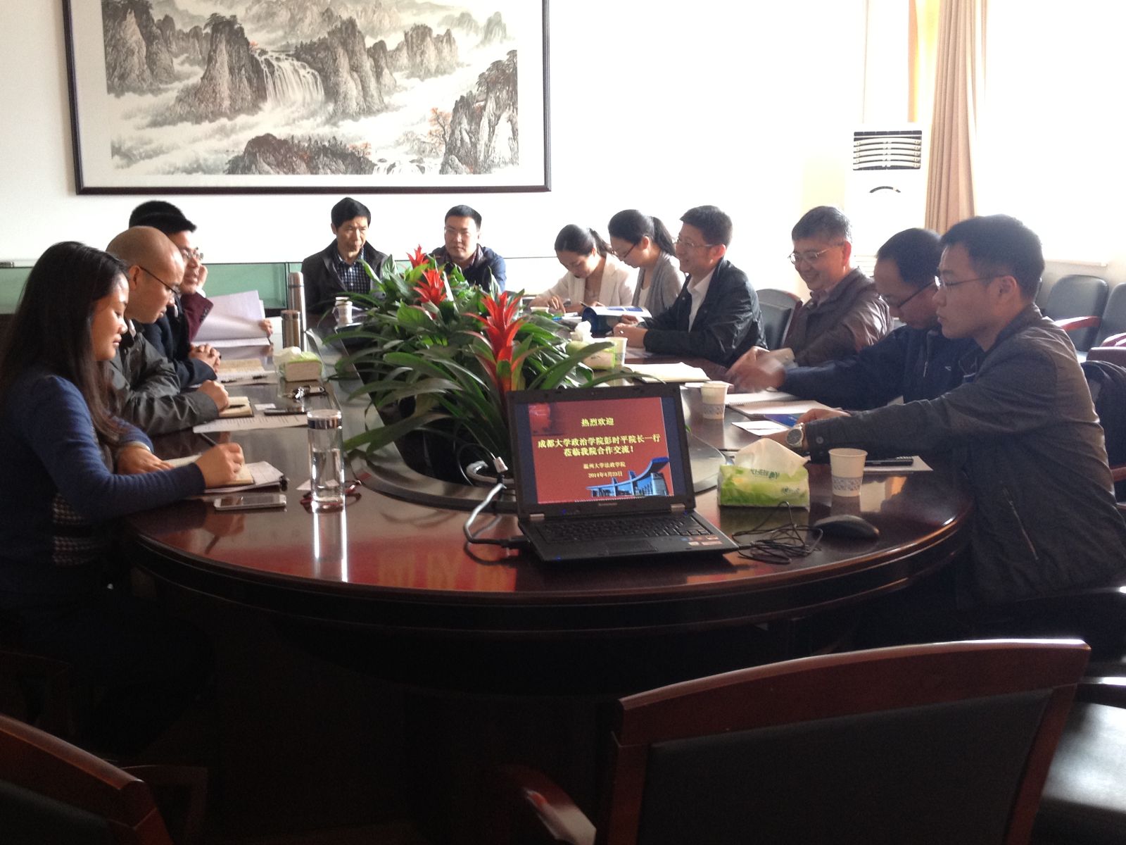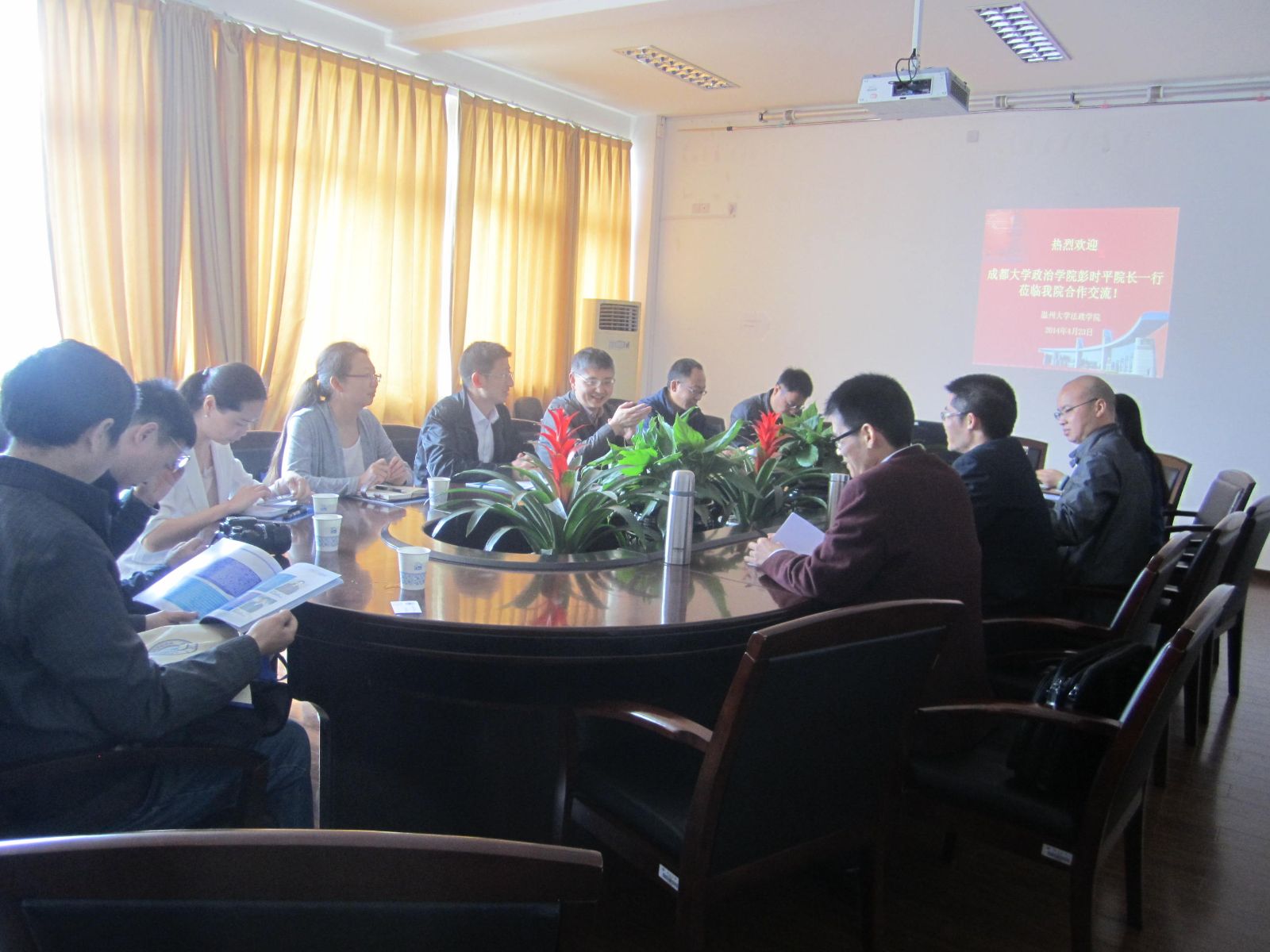 4月23日上午,成都大学政治公司彭时平经理一行8人莅临公司交流团队建设经验和洽谈专业交流与合作事宜。钭晓东经理、王宗正副经理和思想政治教育系系主任吴志敏等在公司307会议室参加了座谈会。