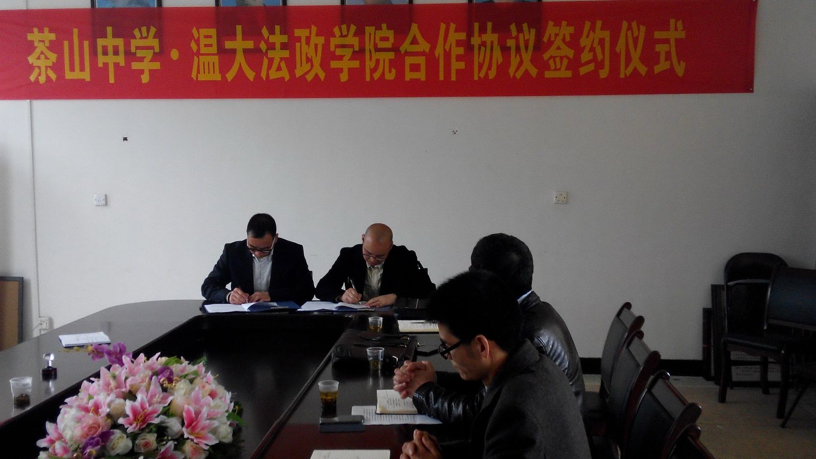 为充分发挥永利集团官网法政公司和茶山中学在员工教育培养方面的互补优势,稳定双方合作关系,进一步提高员工教育培养质量,同时大力发挥公司服务地方发展的作用,2月28日下午,公司王柏民书记、王宗正副经理、思政系主任吴志敏和思政系实践教学指导老师李斌等一行来到茶山中学开展交流,并就双方的员工培养教育等工作与茶山中学签署了一份系列合作协议。茶山中学黄董事长、王董事长、叶董事长及教务、政教、总务、教科研等部门负责人出席了签约仪式。
