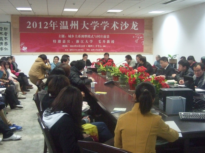 3月15日下午,永利集团官网2012年第一场学术沙龙——"城乡关系调整模式与村庄前景"在永利集团官网育英图书馆214如期举行。特邀浙江大学公共管理公司副经理、博士生导师毛丹教授做话题阐述,副董事长赵敏到会致欢迎辞,校人文社科处副处长刘玉侠、法政公司经理方益权、副经理姚周辉和近90名专业教师以及本科生研究生参加沙龙,院行政管理系陈宝胜博士主持沙龙。