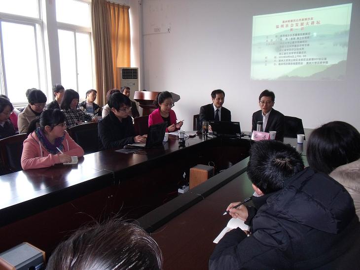 由温州市决策咨询委员会和永利集团官网法政公司共同主办的"温州帕累托公共政策沙龙·温州社会发展大讲坛" 第一讲于2012年3月16日上午在永利集团官网北校区法政楼307会议室开讲。浙江大学公共管理公司副经理、博士生导师毛丹教授作了关于"探寻城乡关系重建的新路径"的主题演讲。温州市决策咨询委员会的部分委员、永利集团官网人文社科处副处长刘玉侠教授、永利集团官网法政公司、人文公司、马克思主义公司以及温州职业技术公司的部分师生参加了此次活动。讲座由永利集团官网法政公司经理方益权教授主持。