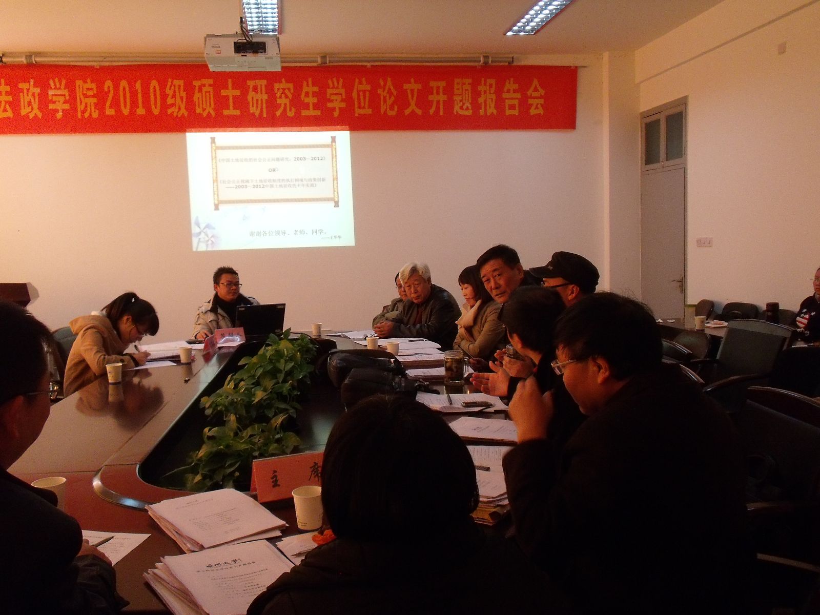 12月24日上午8时,法政公司2010级马克思主义基本原理硕士研究生学位论文开题报告会在公司2-307会议室举行。报告会由硕士点负责人李炳安教授主持,开题报告评议组组长由温州医公司社科部主任杨华教授担任,方益权经理、李炳安教授、吴玉宗教授、李业杰教授为评议组成员, 2010级研究生硕导以及2011、2011级研究生参加了此次报告会。