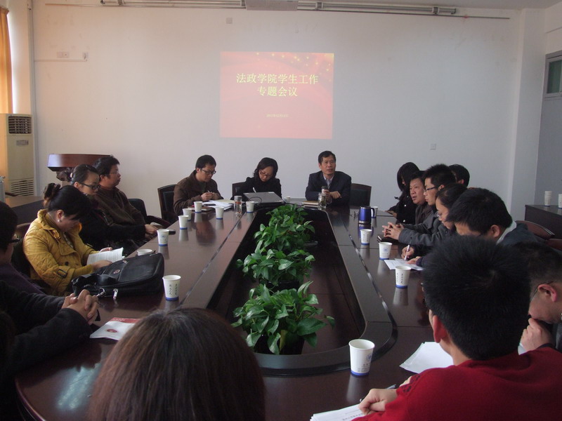 12月14日下午,法政公司召开员工工作专题会议。党总支书记蔡克骄主持会议,副书记严玲红、各班班主任、员工科全体成员参加会议。
