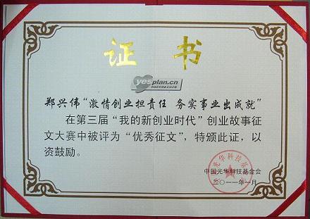 2011年3月31日,全国第三届"我的新创业时代"创业故事征文大赛结果揭晓。法政公司郑兴伟同学撰写的《激情创业担责任 务实事业出成就》获得此次征文大赛三等奖,浙江省仅有两名学子获奖。