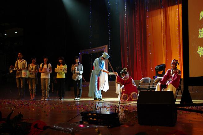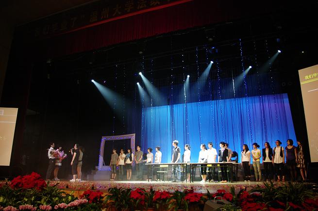 | 在盛夏的阳光下,到处绽开着毕业生的玫瑰花。道声再见,莫忘师生情。美丽的校园,留下了他们青春的足迹和风采。转眼间,"我们毕业了",短短的五个字包含了太多,是不舍,是留恋,是温馨,更是一个新的起点。 追忆青春年华如水 相约灿烂前程似锦 "韬奋钟声,音尤在耳,纵然天涯海角,散各一方,都将万里相伴,让我们再回首,在最初的起点,为最灿烂的青春画上最华丽的句点……"5月23日晚,法政公司全院师生在老员工活动中心演艺厅与06届毕业生齐聚一堂,用一幕幕精彩而饱含感情的节目来回忆四年的生活共话师生情谊。毕业生晚会沉浸着离别的伤感,也弥散着祝福的温馨,每个毕业生淡淡的离愁别绪感染了在场的每一个人。 燃起绚丽缤纷的烟花 回首拔节成长的青春 晚会伊始,公司十佳歌手带来歌曲串烧,无限震撼的开场令场下观众掌声雷动,激情澎湃。此时烟花四起,副经理钭晓东老师走上台,清唱了一首《别亦难》,表达了对毕业生的祝福与不舍,使晚会持续升温。08政本的舞台剧《梁祝》更是将晚会推向了高潮,幽默的台词,夸张的表演,却满载着他们对学姐学长的情谊,希望他们走出大公司园之后都能找到彼此的幸福。之后的游戏"我们的心中的秘密",更是让每个人动容,那些小纸条里承载的不仅仅是青葱岁月的痕迹,更是每个毕业生心中最珍贵的青春。无论是爱的表白,还是冰释前嫌,在这一刻,除了感动,只有珍惜。 相逢是激动人心的歌 离别是催人泪下的诗 《有没有那么一首歌,会让我想起你》,617寝室的全体男生在台上相拥,兄弟之间的那份情谊是那么炙热。方益权经理代表公司为晚会致辞并和员工对歌一首,送上老师对员工的美好祝福。 舞台剧《同桌的你》,是06社本的全体同学在大学的最后一堂课。他们对着班主任集体大喊:"老师,请留步。我们舍不得您,非常非常舍不得您,但是我们必须告诉您,我们必须离开您,我们必须去工作,去谈恋爱,去奋斗,这件事十万火急,我们一天也不能等,请您接受我们离开前最后的问候。"深深地鞠躬,使这位班主任在台上潸然泪下。 用不舍定格离别的镜头 用祝愿抚慰感伤的心情 舞台上缓缓拉开幕布,展示了一些毕业生在校园各处拍照留影的镜头,学子广场的草地,图书馆前的小桥,伴随汗水与友谊的球场,熟悉的课堂,可亲可爱的老师,走过一遍又一遍的小道……这里记录了他们走过的快乐与忧伤,也见证了他们的友谊与爱情。所有这些记忆里的符号都定格成为永恒,贴进青春的记忆册里,作为一生的慰藉。 欢笑与洒脱挥别昨日 责任与勇气承担未来 游戏《非诚勿扰》惊爆全场,三位男孩子用朴实幽默的语言征求12位美女的芳心,他们以一种特殊的方式给四年的老员工活挥手告别。最后,全场以一场激情洋溢的大合唱《明天会更好》表达了对毕业生们深深的眷恋、祝福和同时也是对温大法政美好未来无限的向往。 祝福毕业生,希望他们一路走好,也希望他们牢记"法治天下,政通人和"的理念,并将它带到自己的工作岗位上。