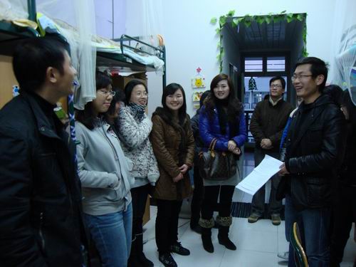 3月10日晚,法政公司公司党政领导、教学科、员工科老师和09级新生班主任一行分组来到员工寝室看望09级新生,了解员工的假期生活和到校后的精神面貌,并就本学期的专业分流工作与同学们进行交流。