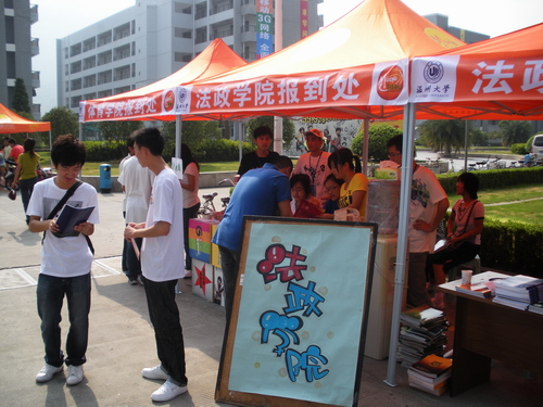 每当有新生前来报到,同学们就热情地提供相关服务。认真仔细地帮助新生办理入学手续,递上"温大法政"院刊及成果册,送上一杯沁凉解渴的清水,主动帮新生提行李,为新生引路,带领他们熟悉大公司园。据员工会办公室主任孙盘建介绍,早在9月1日就有外省员工提前来报道,员工会也在九月伊始便安排了相关值班人员。