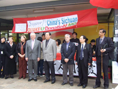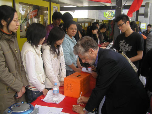 | 5月12日14时28分四川省汶川县发生的8级强烈地震之波及范围之大,30多年来的罕见,至今为止已造成5万多人遇难,近30万人受伤,累计失踪约3万余人。"爱心无国界,天虽无情,人间有爱"!自这场灾难发生之时起,灾区人民的救援及重建就牵动着每个人的心,包括海外的中国学子及国际友人,大家只有一个心愿,就是尽自己的力量,与灾区人民共渡难关、重建家园。 为此,在2008年5月19日-21日的全国哀悼日期间,在澳大利亚进修的法政公司钭晓东教授联合澳大利亚新南威尔士州中国员工学者联谊会Macquarie大学分会,在Macquarie大学组织"support China’s Sichuan"的爱心无国界抗震救灾捐款活动。海外学子的"心系祖国、心系灾区人民"的一片赤诚充分感染了Macquarie大学的中外师生,得到了Macquarie大公司方的全力支持。Macquarie大学副董事长William McGaw代表校方充分表达了对"中华民族的凝聚力和自强不息精神"的敬佩与赞赏。除William McGaw副董事长外,还有多名校方负责人士,如:世界自然保护同盟环境法委员会副主席、Macquarie大学环境法中心主任Michael Jeffery ,世界自然保护同盟环境法委员会委员、环境法中心副主任Donna Craig,国际事务主任Alison Taylor,社会公司Naren Chitty经理和语言公司经理Robyn Guilmette 等均现场支持义举并捐款。中国驻悉尼总领馆教育组白刚参赞和周波领事亲赴现场慰问师生,代表总领馆感谢中外师生们的义举,白刚参赞还将自己亲手书写的一幅书法作品"爱"送给组办方,作义卖筹款之用。三天里,广大中外师生纷纷解囊,共筹善款近33万RMB:其中澳币:47938.8元、人民币:6836.8元、美元:140.1元、港币:340元、以及少量加元、欧元、斯里兰卡元和汤加币。白刚参赞代表总领馆接受了这批善款。 此次Macquarie大学为中国四川灾区募捐及义卖活动得到了CCTV,the Australian New Express Daily and the Macquarie Globe,China Radio International,Macquarie University -Centre for Environmental Law Macquarie(http://www.law.mq.edu.au/MUCEL/news/earthquake.htm)等的报导。爱心在跨国界层面得到了传递,同时也让世界共同见证了中华民族的凝聚力和自强不息的精神!