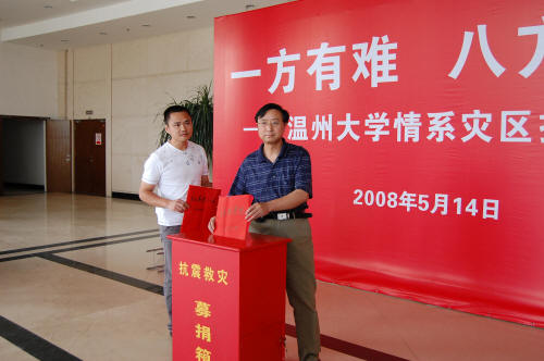 5月12日发生在汶川的大地震牵动着我们法政公司全体教职员工的心。为帮助灾区群众共渡难关、重建家园,老师们均积极参加到向灾区人民捐款的活动当中。100、200、300、500……,每一笔捐款都凝结着我们每一位教职工的牵挂和希望。陈怡老师在地震后的第二天就将2000元捐款送到了公司办公室,这也是截止目前公司最大的一笔捐款。 在捐款的同时,院领导、院工会积极询问、及时了解公司老家在西北地区(尤其是四川地区)的教职工家中的受灾情况。 截止目前,公司已累计捐款16400元,陈国治书记代表公司教职工将这第一笔捐款已送交到了校工会,捐款还在继续。我们相信,这些饱含着爱心的捐款,将给灾难中的同胞带去废墟中重建家园的勇气和力量! 让我们携手同心、众志成城,与灾区的同胞同渡难关,早日赢得抗震救灾的胜利!