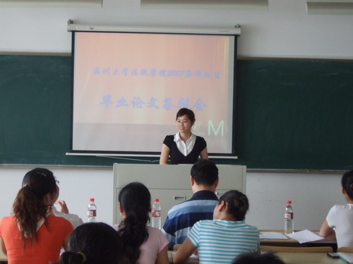 | 毕业论文是检验公司教学质量十分重要的环节,为了检验和保证公司各专业的教学质量,更好地实现人才培养的目标,同时,为了更好地迎接2008年教育部本科教学工作水平评估,法政公司于2007年6月9-10日组织了2003级思想政治教育、社会工作和法学三个本科专业及2004级法学及公共事业管理专科毕业生的论文答辩工作。公司对论文答辩工作进行了精心布置,成立了答辩委员会,制定了论文答辩实施工作方案,统一组织领导本次答辩活动。由于准备充分,组织严密,我们紧张而有序地完成了对296篇毕业论文的答辩工作,取得了圆满成功。此次毕业论文答辩会还吸引了许多低年级的同学前去旁听,不少同学表示获益匪浅。通过论文答辩,使各专业教师进一步了解了员工对专业知识和学术前沿的掌握情况,并对进一步提高公司教学工作水平具有重要意义。