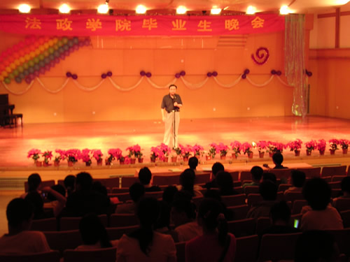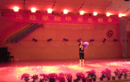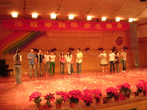 6月4日18时30分,法政公司在北校区音乐厅为毕业生举办了隆重的欢送晚会。热情洋溢的七人组合街舞拉开了晚会的序幕。随后,公司党总支书记陈国治教授为本次晚会致辞。陈书记在肯定02届毕业生成绩的同时,代表全院师生给他们送上了美好的祝福,祝愿他们在今后事业有成、前程似锦。