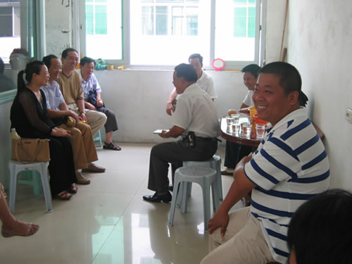 | 为了让党的先进性教育更贴近实际,法政公司教工第二党支部采用"走出去"、"典型引路"的方法,用生动鲜活的事例教育每一位党员。2005年9月25日上午,党支部一行9人,前往瑞安市塘下镇新坊村,走访并慰问了全国劳动模范、瑞安"种粮大户"王金连老人。村干部把我们带到老人家里,老人非常高兴,他回顾了自己种田的经历,感谢党和政府给他的关怀与荣誉。法政公司党总支副书记金南松、支部书记任映红代表全体党员对老人多年来为我国粮食生产所做的贡献表示崇高的敬意和诚挚的慰问。 附图: