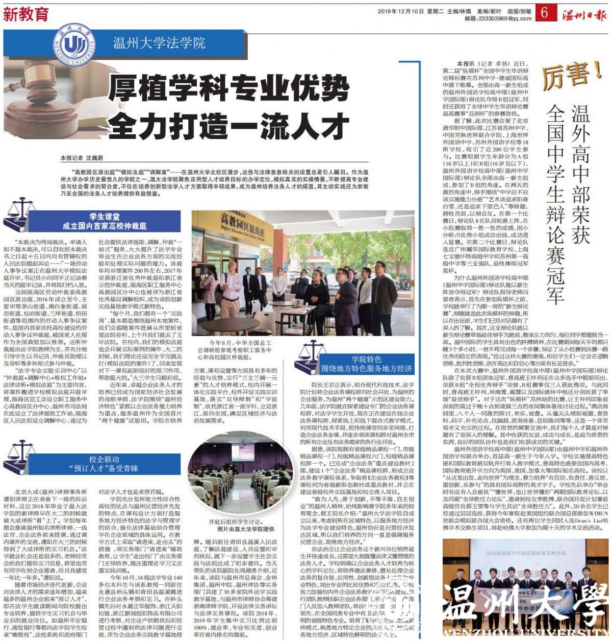 “敢为人先、善于创新,不等不靠、自主创业”的温州人精神,始终影响着公司多年来的培育理念,据王经理介绍:“yl永利集团官网登录自成立以来,考虑到所在区域特色,以服务地方经济为法学专业建设特色,温州恰好是民营经济发达区域,所以我们培养的方向一直是强调服务民营企业,助推地方经济。”
