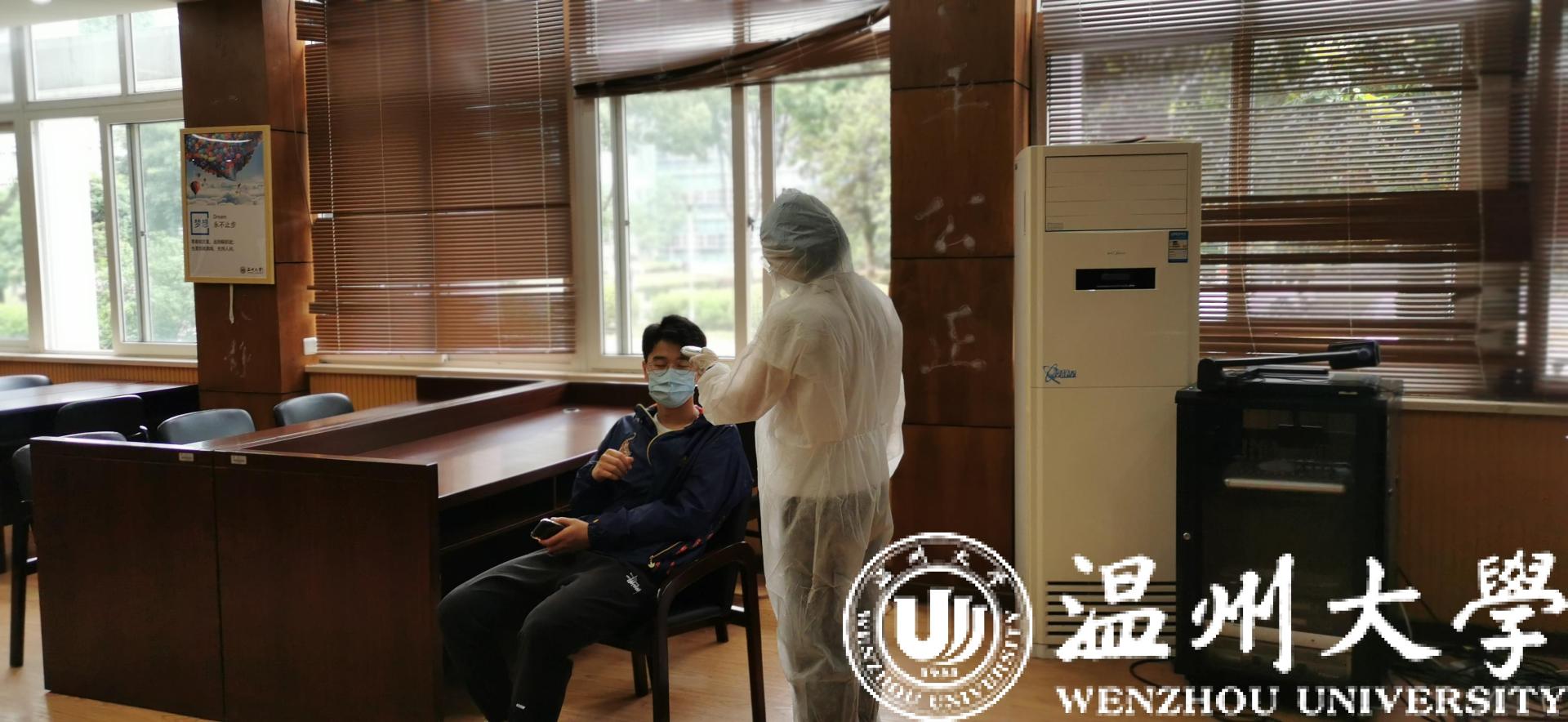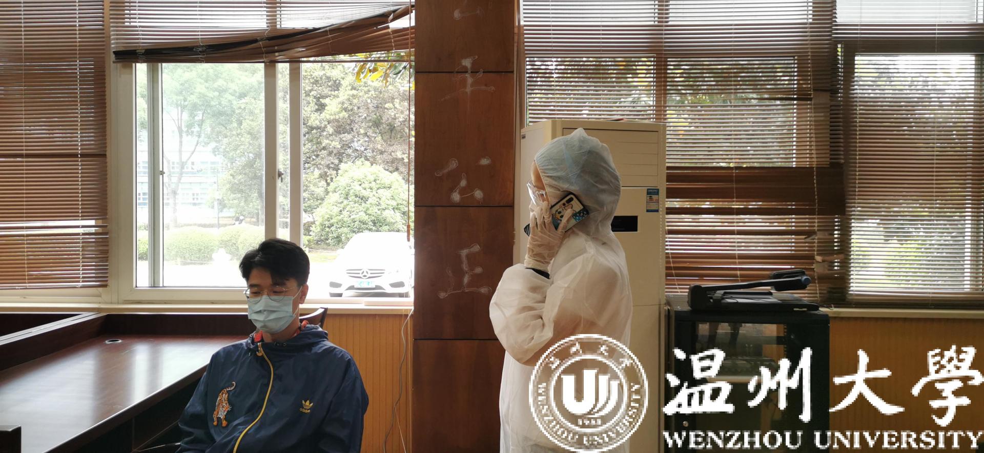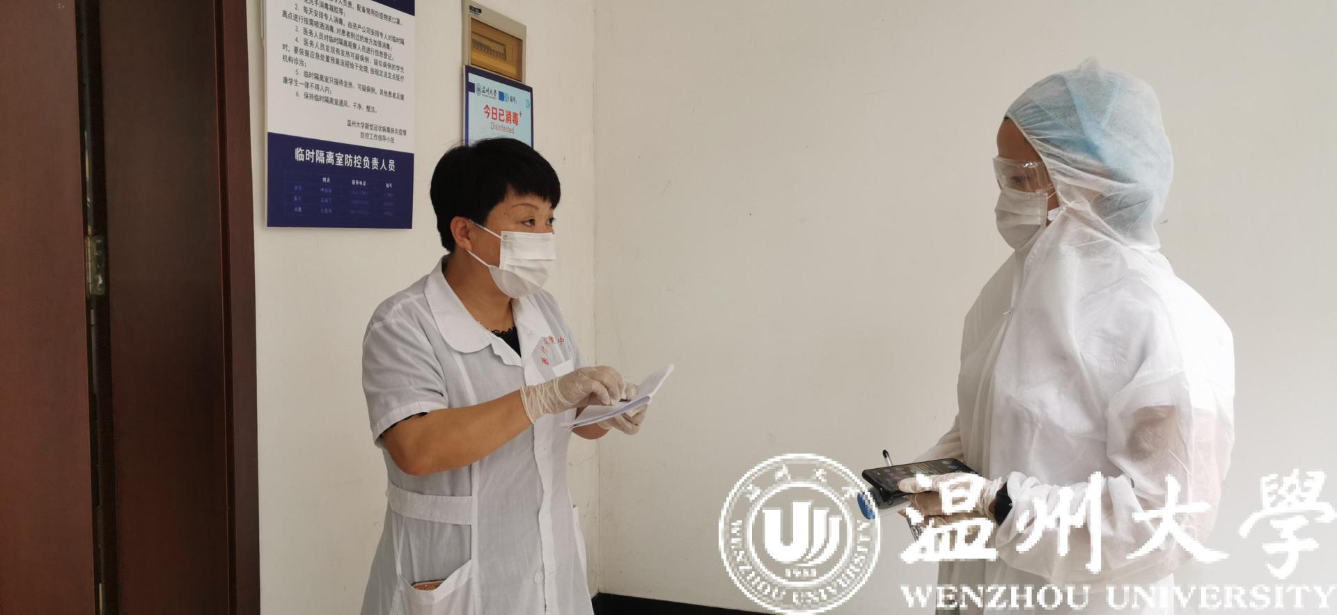 辅导员将疑似症状员工带至临时隔离点,询问情况并测体温后,通知医生到场