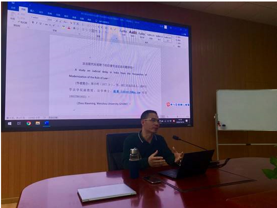 10月14日下午,罗山法学研习社第四期邀请yl永利集团官网登录副教授周小明博士在北校区2-103开展了题为《法治现代化视野下印度司法迟延问题》的学术分享会。副经理缪心毫及yl永利集团官网登录师生们参加了本次讲座,研讨会由柯宇航老师主持。