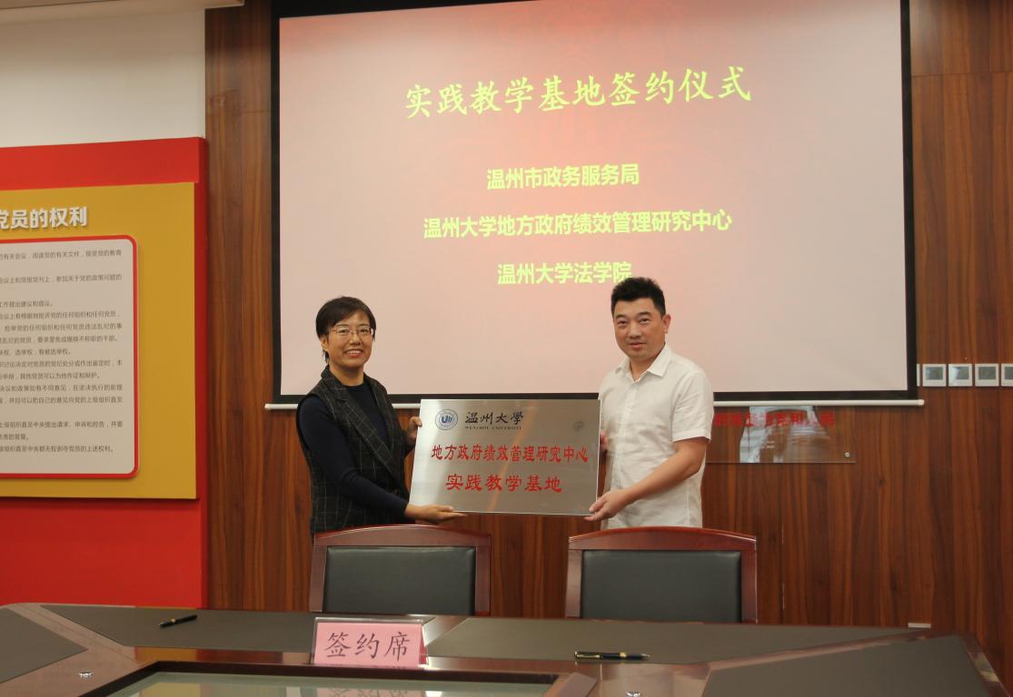 地方政府绩效管理研究中心主要在本区域范围内从事政府绩效评估和考核与研究工作,致力为公司行政管理专业发展服务,为员工实习、见习提供重要支持。本中心与温州市政务服务管理中心有着长达八年的第三方绩效评估合作,致力于推动温州市行政审批制度改革、“最多跑一次”改革和公共资源市场化配置的发展。因此,在此基础上,双方通过建立实践教学基地合作关系,将进一步提升行政管理专业员工在相关领域内的专业竞争力。