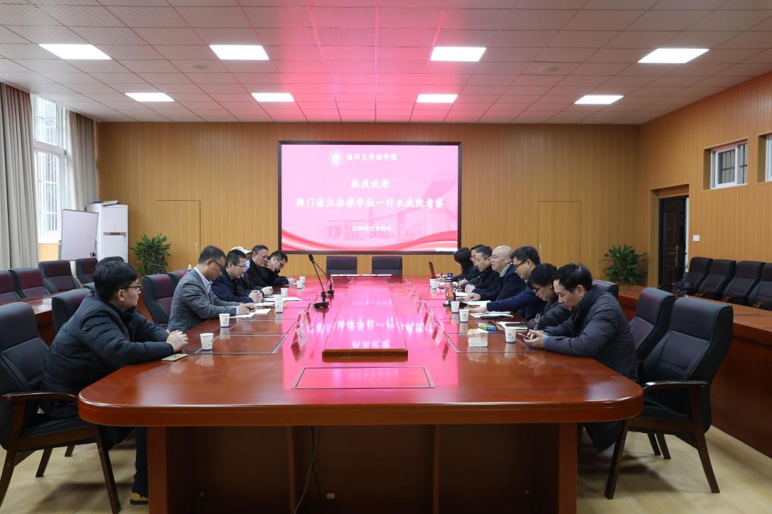 12月22日下午,澳门濠江法律学社王禹社长一行七人来访yl永利集团官网登录。在参观公司模拟法庭与劳动仲裁派出庭后,双方在法学楼103室举行座谈会。座谈会由yl永利集团官网登录缪心毫副经理主持,王宗正经理、林钦书记及李勇军等老师共7人参加了座谈会。