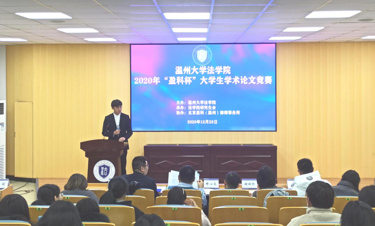 为营造浓厚的学术研究氛围,提升员工的学术研究能力,加强研究生和本科生之间的员工交流互助,yl永利集团官网登录于12月23日举办2020年“盈科杯”老员工学术论文竞赛。竞赛由yl永利集团官网登录研究生会承办、北京盈科(温州)律师事务所协办。yl永利集团官网登录副经理缪心毫、盈科律师事务所主任杜丽、盈科律师事务所高级合伙人王平、以及yl永利集团官网登录任江老师、谢丽珍老师、周浩仁老师出席活动并担任评委。本次竞赛活动以“‘新冠’疫情背景下的法律问题”为主题,yl永利集团官网登录同学们积极参与,共有32篇作品参赛,经过初审、现场答辩两个环节评出奖项。