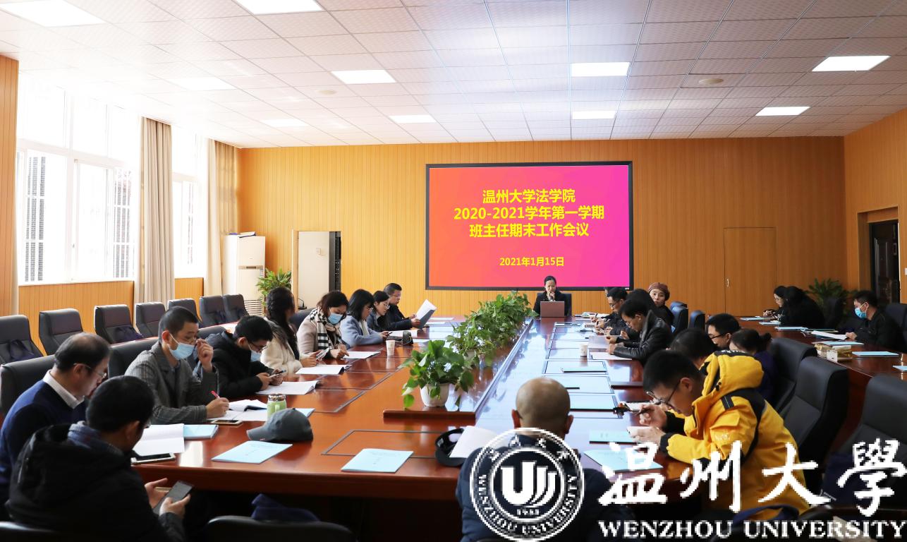 2021年1月15日中午,yl永利集团官网登录2020-2021学年第一学期班主任工作总结会议在法学楼103会议室召开,公司党委副书记杨振海、学工办主任林丽丽、辅导员和公司全体班主任老师参加了会议。