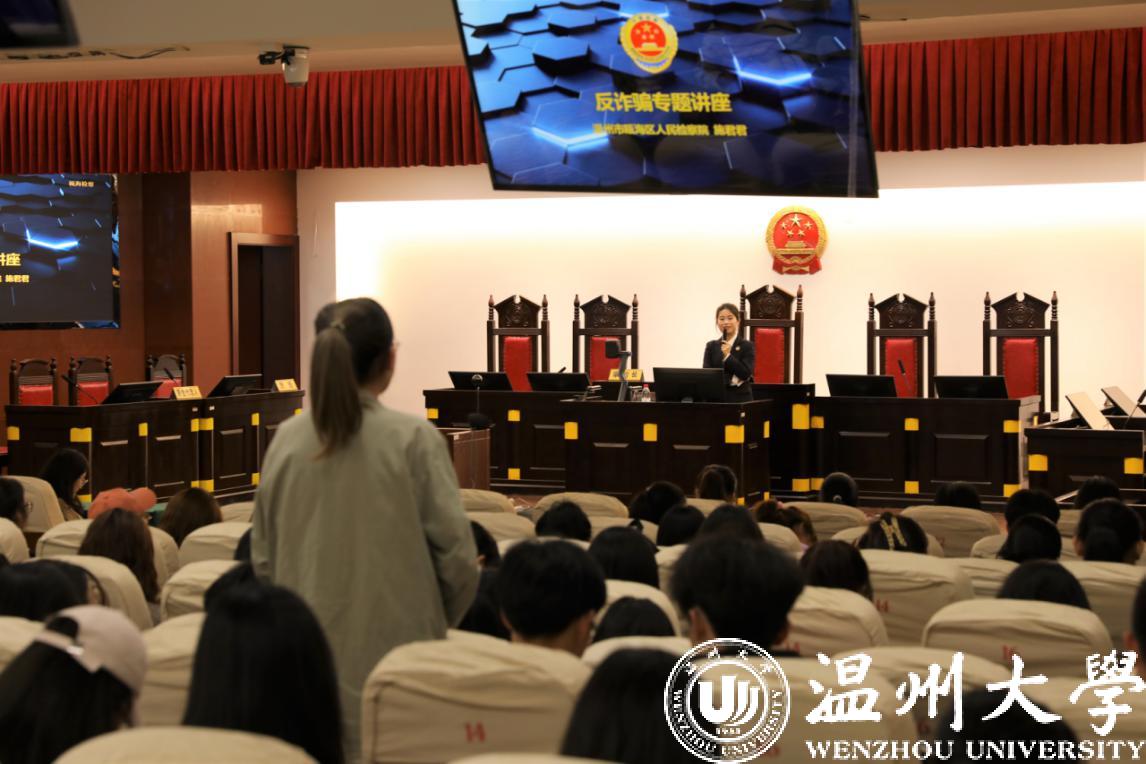 为切实做好安全宣传教育,增强员工防诈反诈意识,营造平安和谐的校园环境,4月7日下午,公司于北校区模拟法庭组织了防诈骗专题讲座。讲座由林丽丽老师主持,特别邀请到温州市瓯海区人民检察院检察官施君君为同学们主讲。
